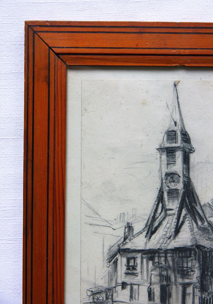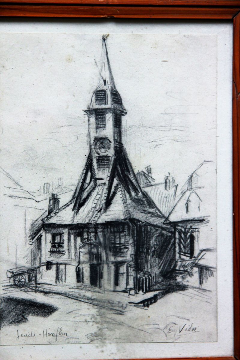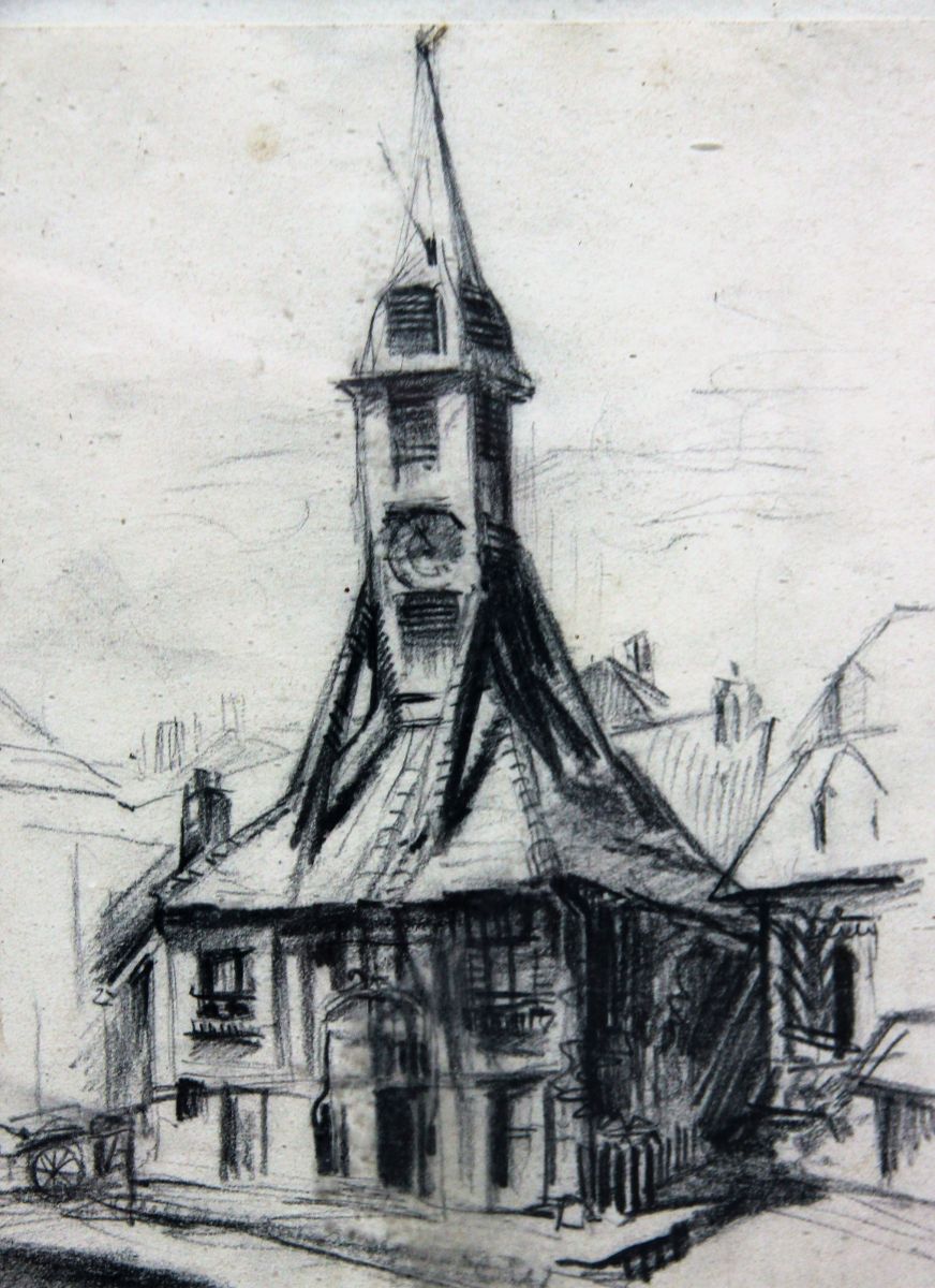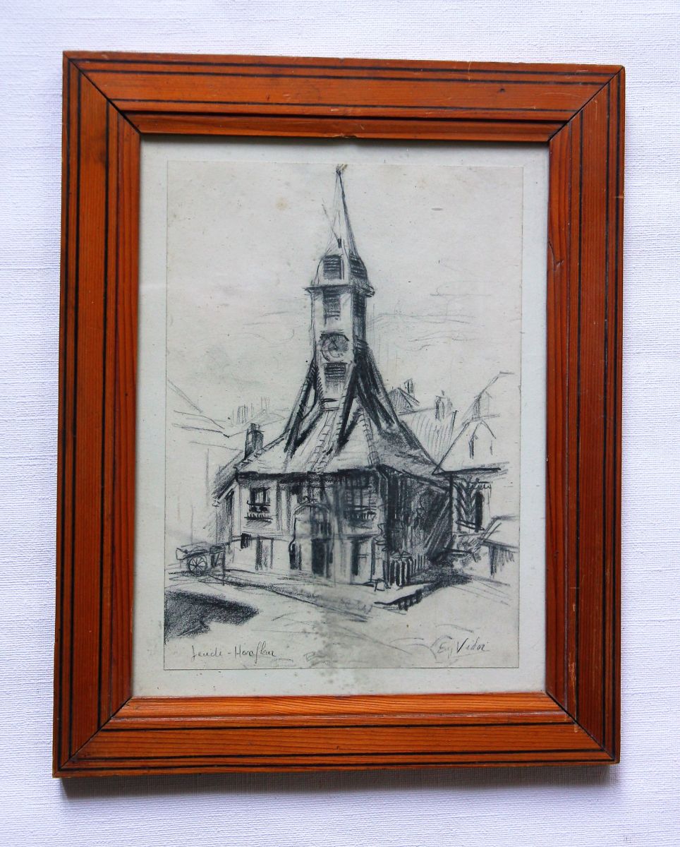 Dessin mine de plomb Eugène Véder "Eglise d'Honfleur".