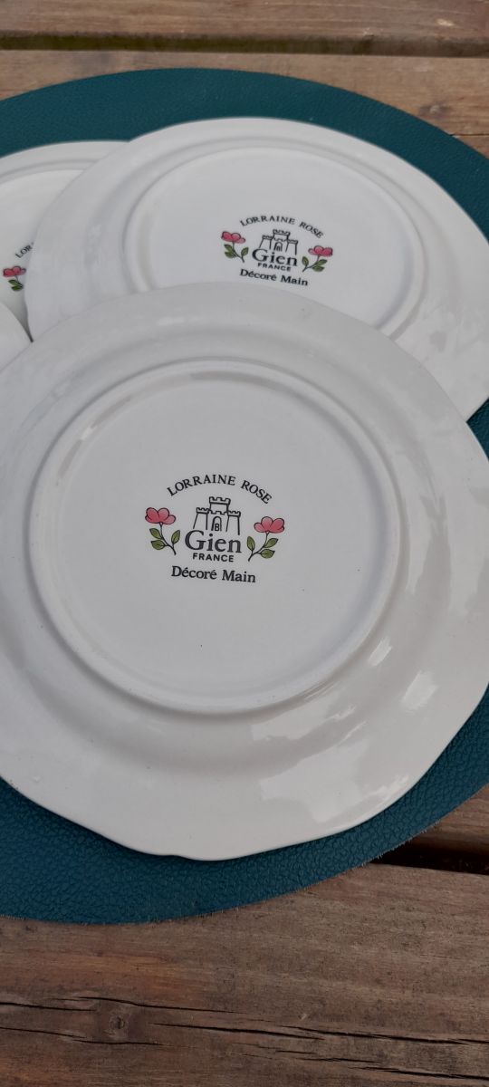 4 assiettes dessert floral, modèle Lorraine, porcelaine Gien