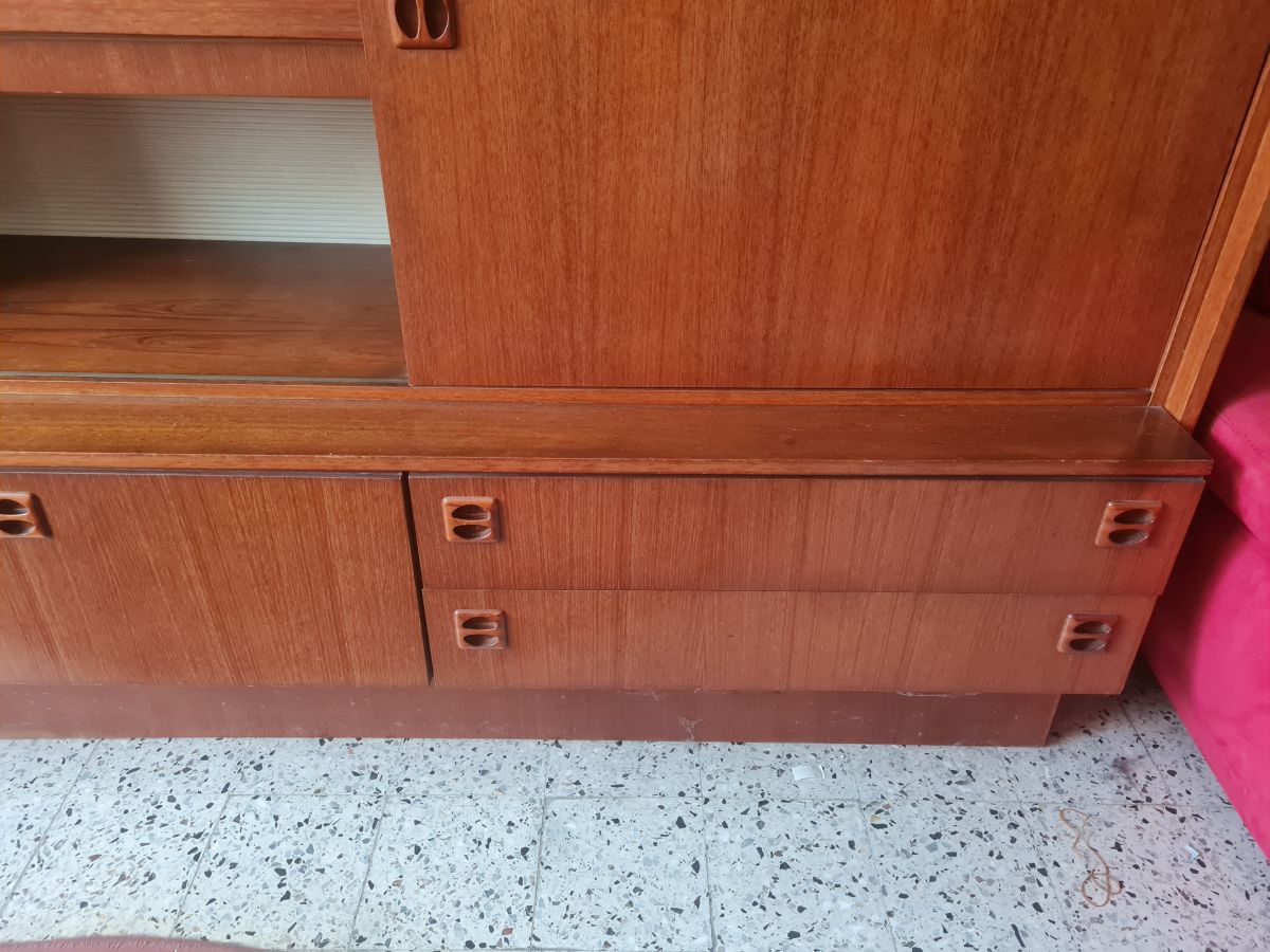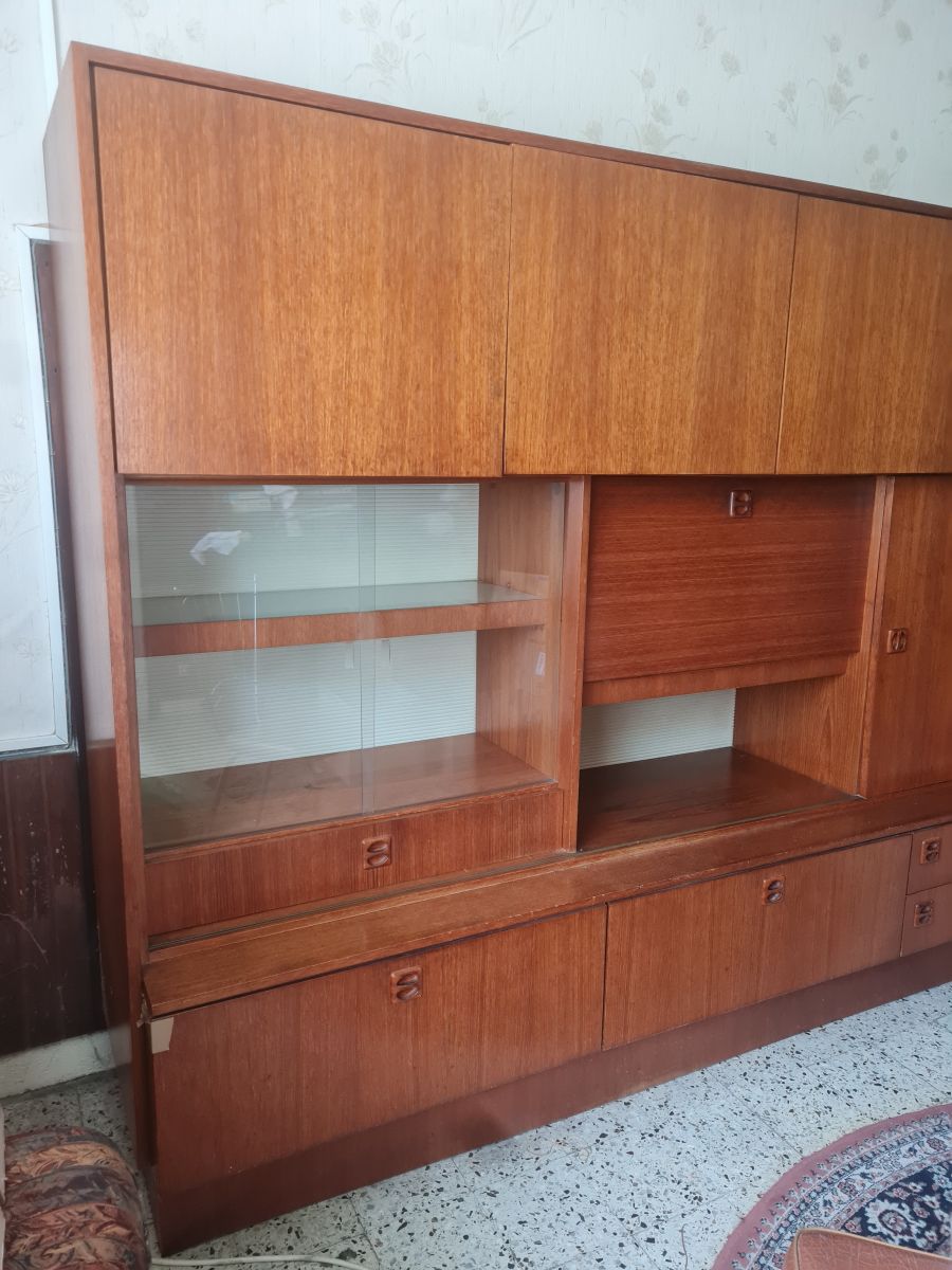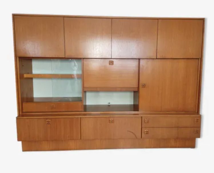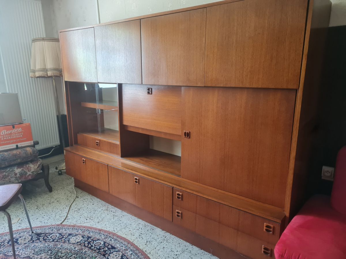 Buffet living année 70 ligne style baumann magique couleur bon état générale une porte dois être reparé avec petit aimant en bas à droite nombreuses rangements bar avec éclairage