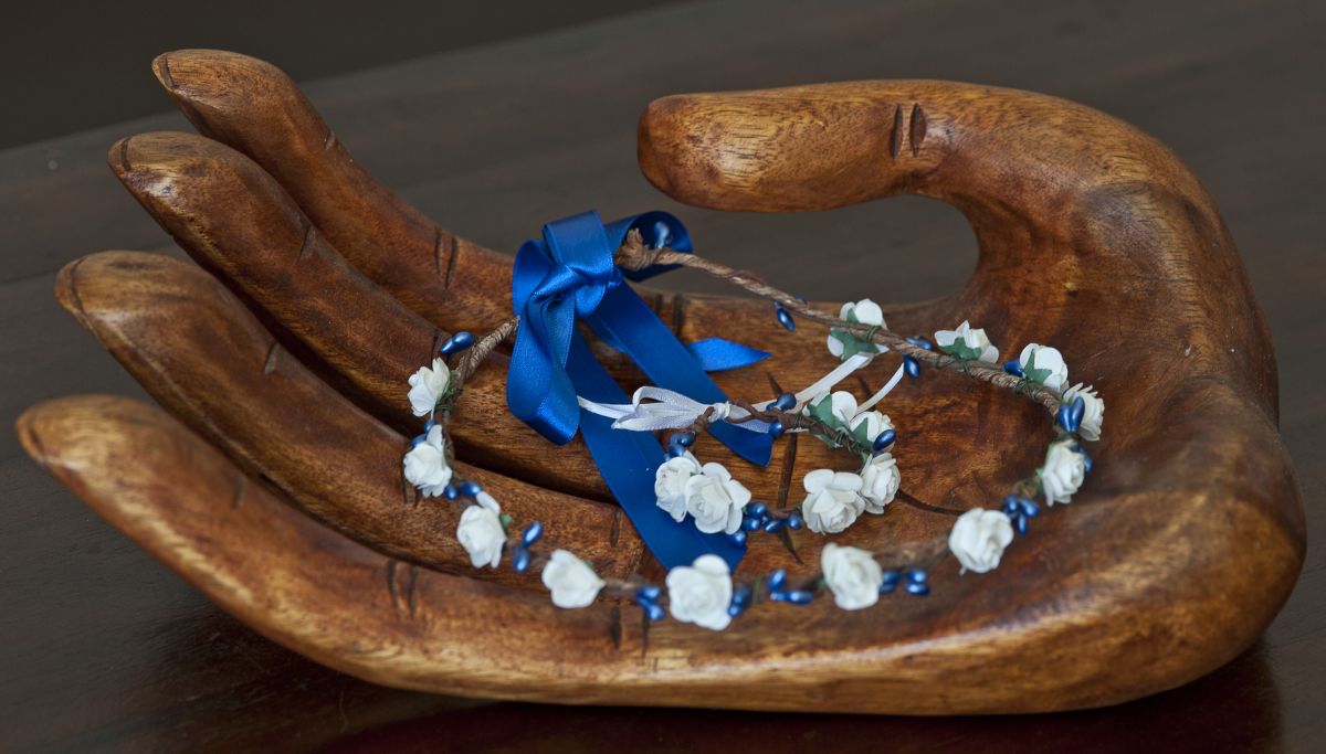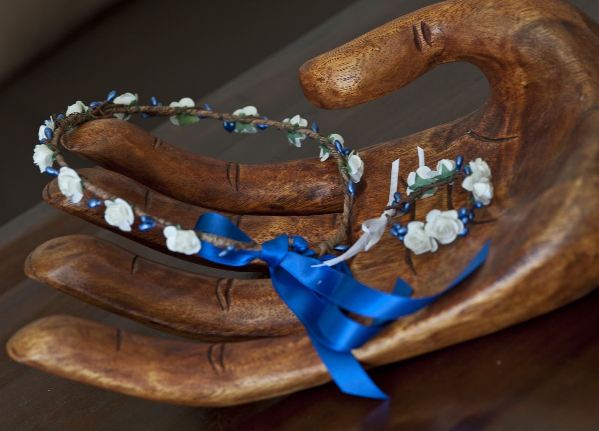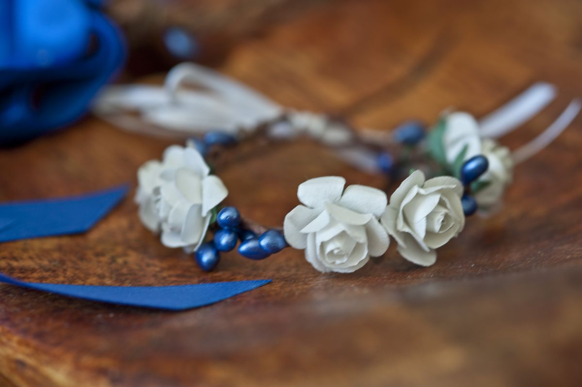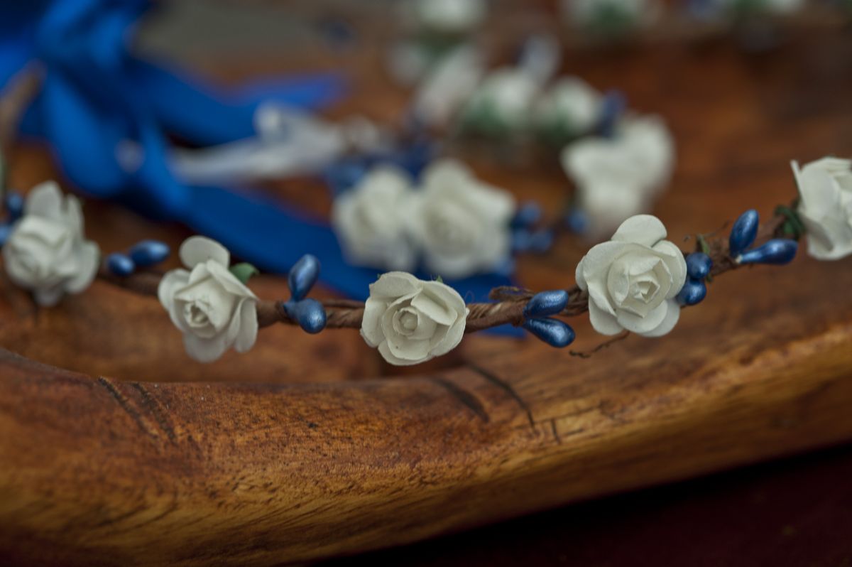 Couronne de fleurs et son bracelet assorti