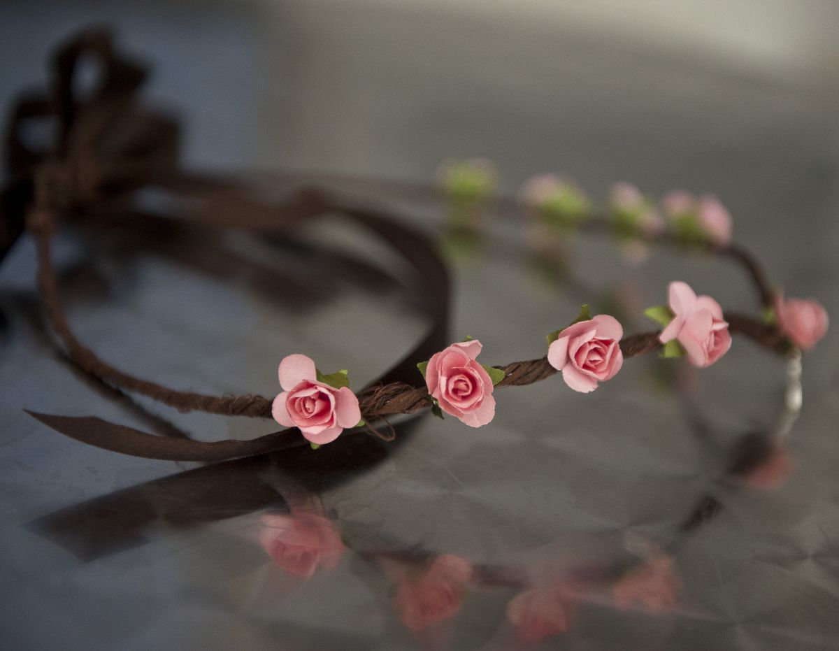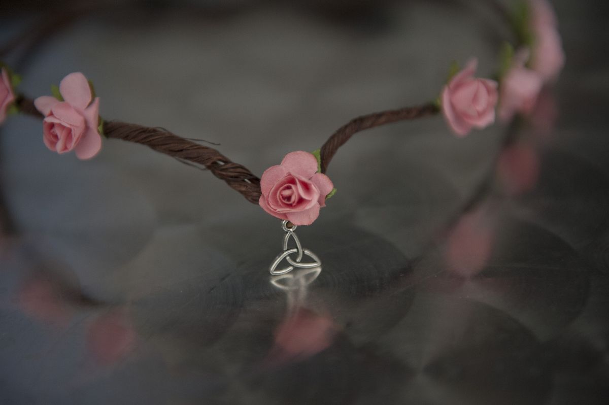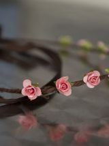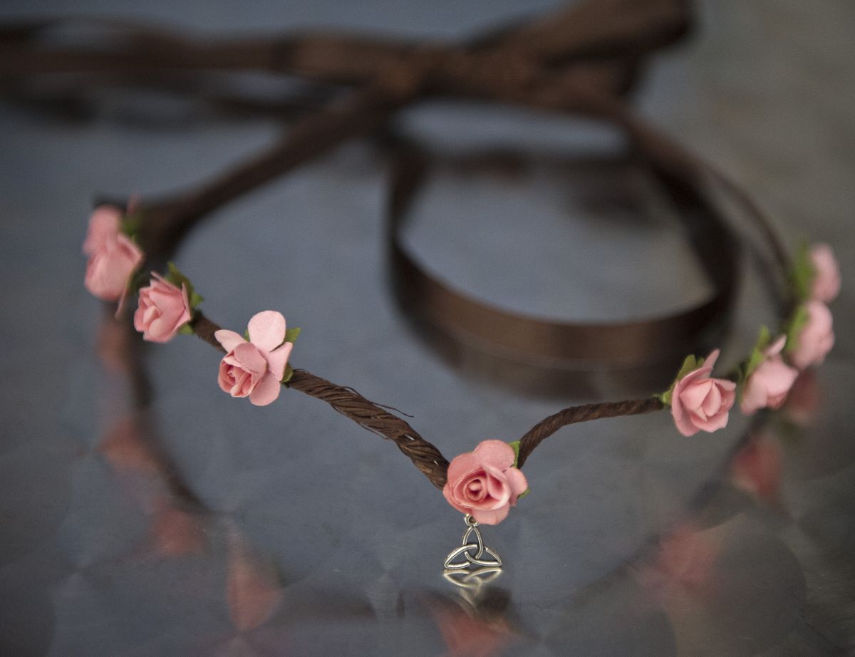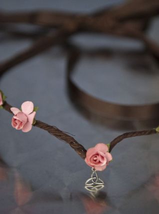Couronne médiévale ado adulte, composée de roses saumon et d'un sigle celte. Fait main avec amour.