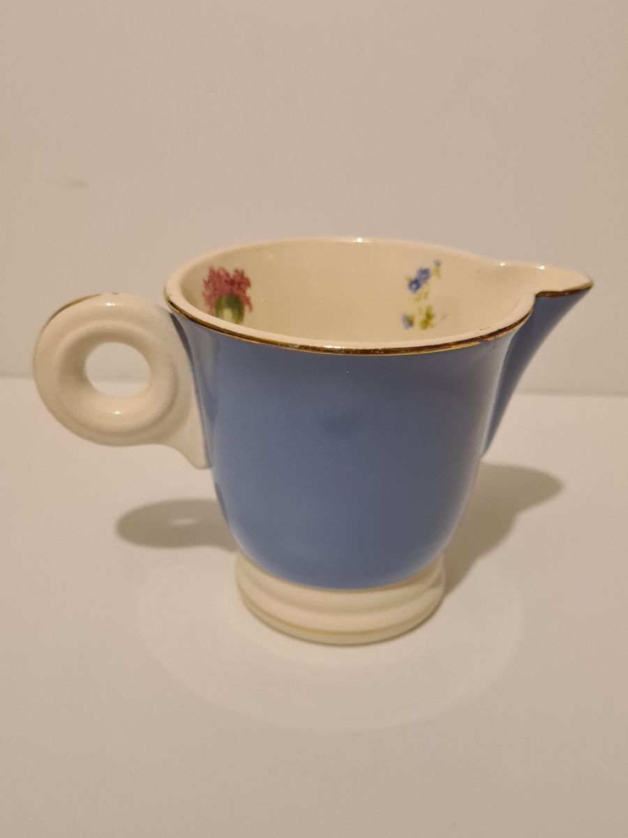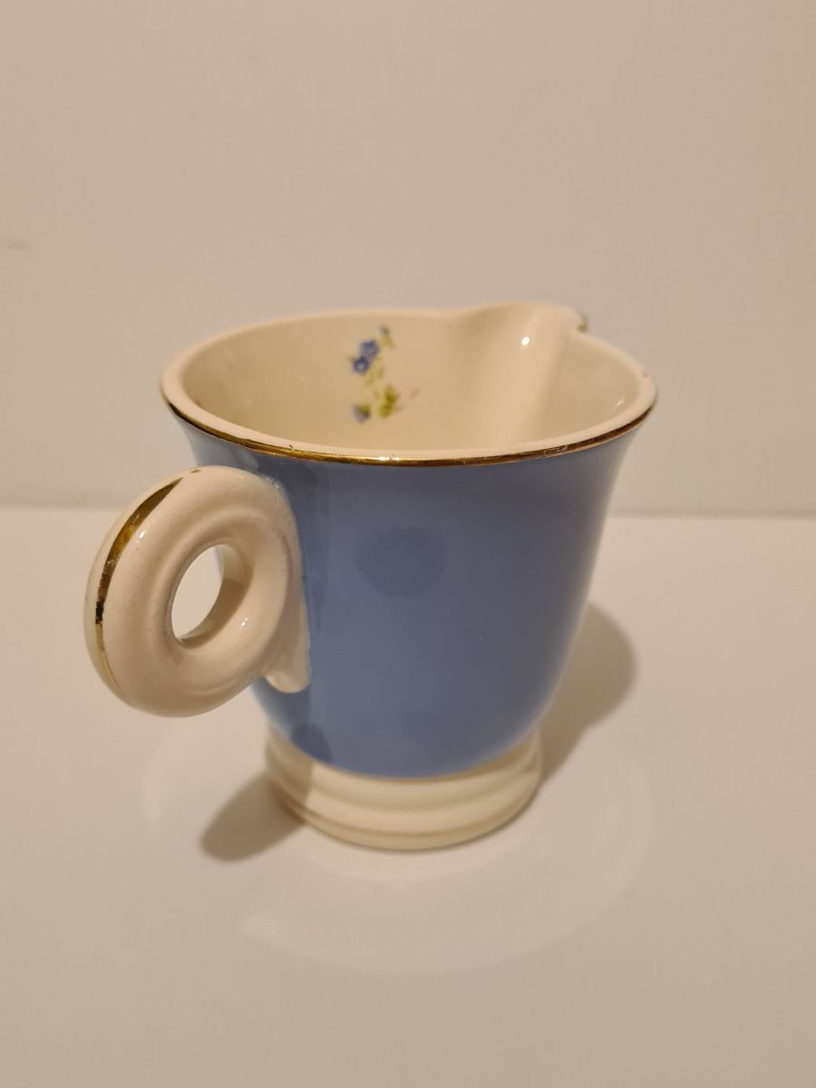 Pot à lait faïence de Digoin Sarreguemine bleu décor floral
