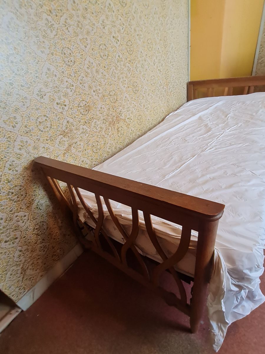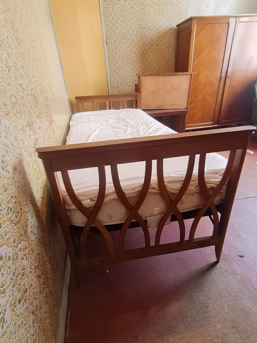 Lit en bois vintage scandinave une personne avec sommier d'époque en métal