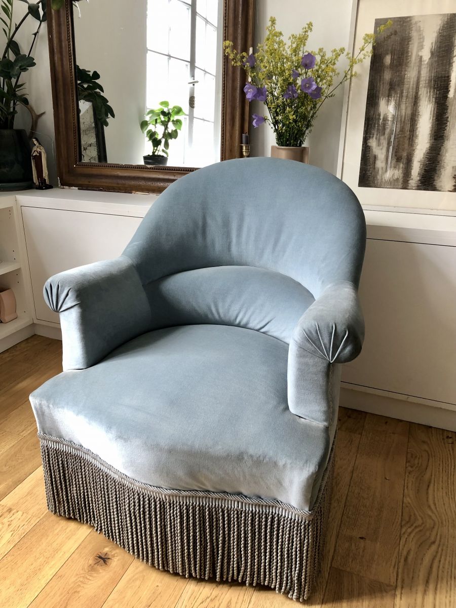 Très beau velours bleu ciel sans aucun accroc ni tâche.