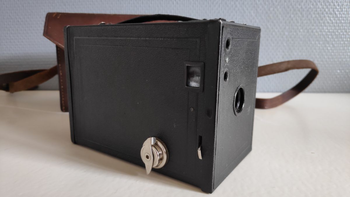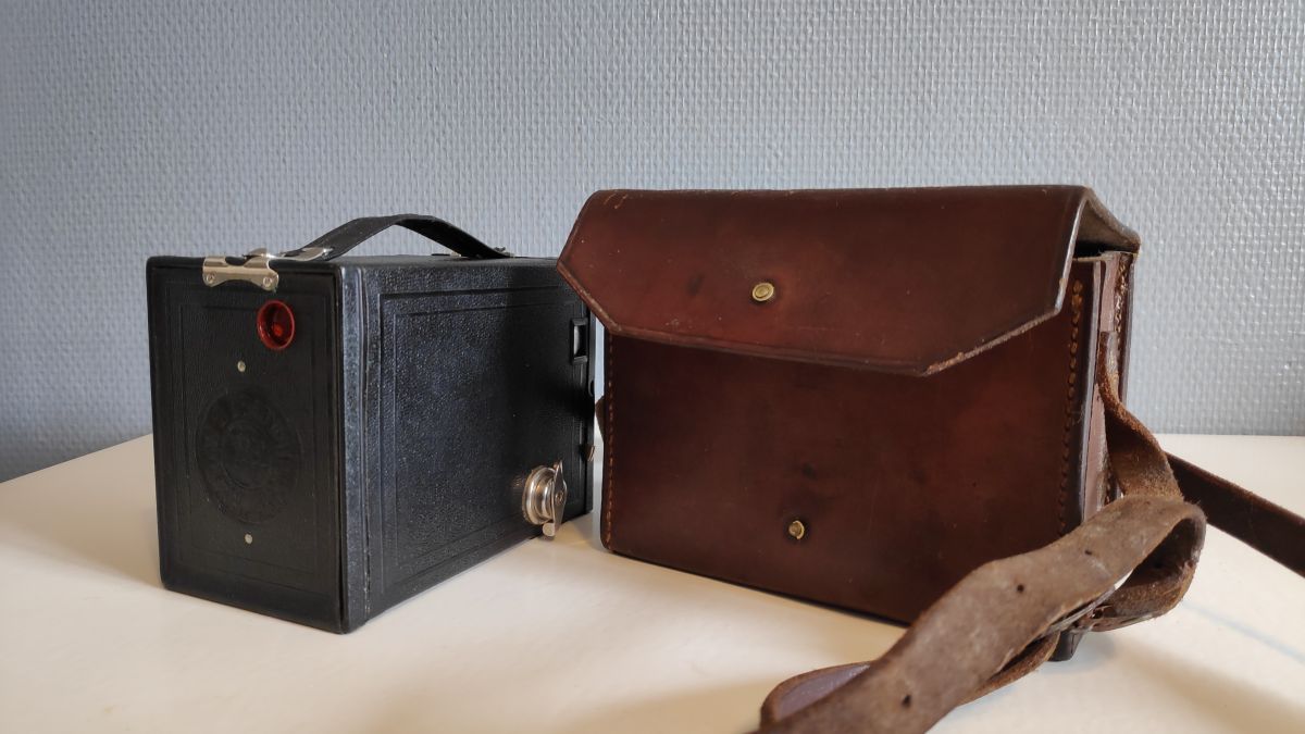 appareil photo ancien Brownie n°2 avec sa sacoche en cuir