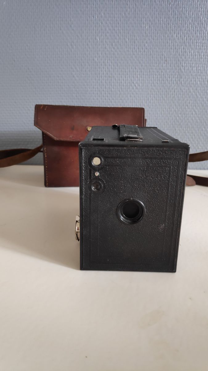 appareil photo ancien Brownie n°2 avec sa sacoche en cuir d'origine