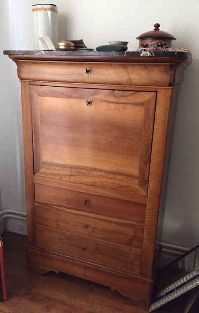 Bonjour, nous recherchons un secrétaire de ce style. Est-il encore disponible ? Si oui, est-il en bon état ?