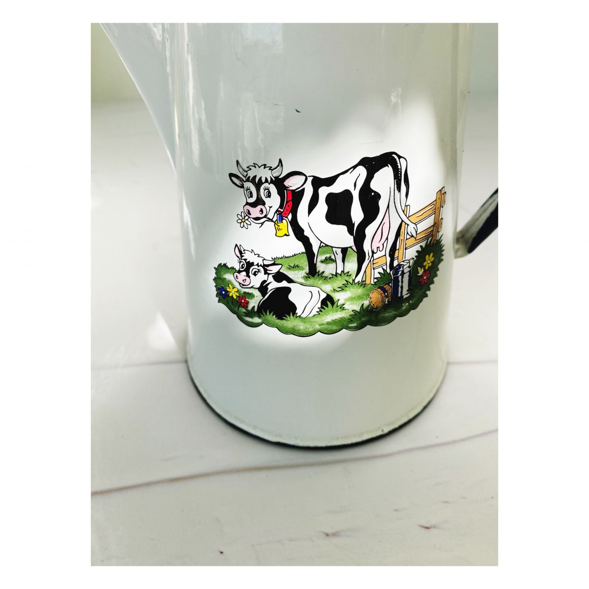 Grande Cafetière émaillée décor vaches, c’est cute, c’est kitsch, c’est style campagne, c'est à vous de décider