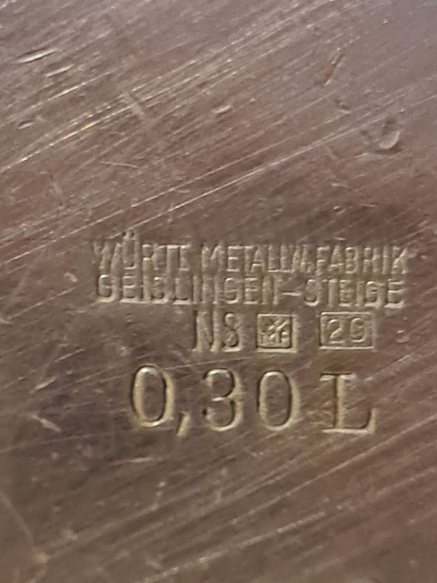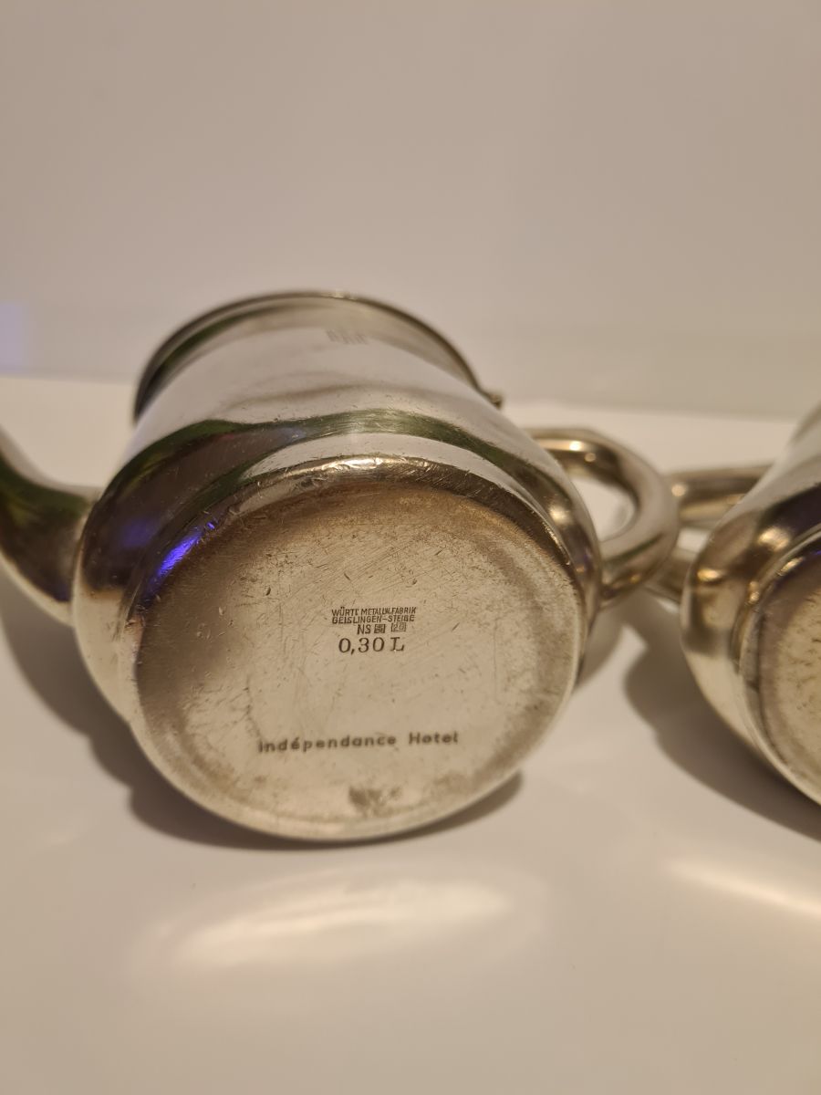 "Pot à lait argent au nom d'independance Hotel 0,28L Württ Metallfabrik Geislingen an der Steige Württembergische Metallwarenfabrik AG (WMF) Dimensions : H. 11,5cm X L. 12,5cm X P. 6,5cm"