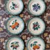 Boîte ronde au décor japonisant peint à la main.Le fond est noir , laqué.2 discrets éclats en bordure.