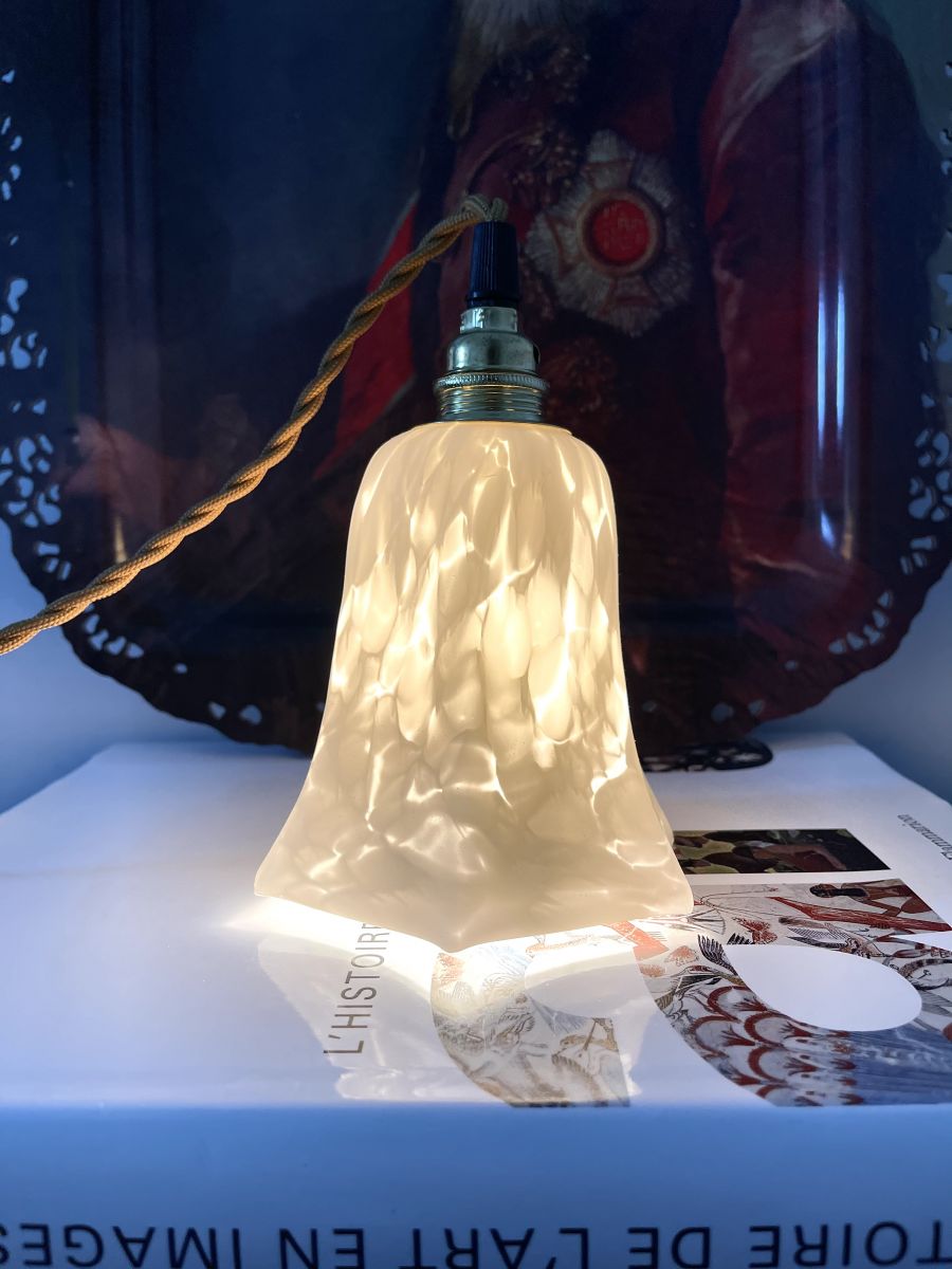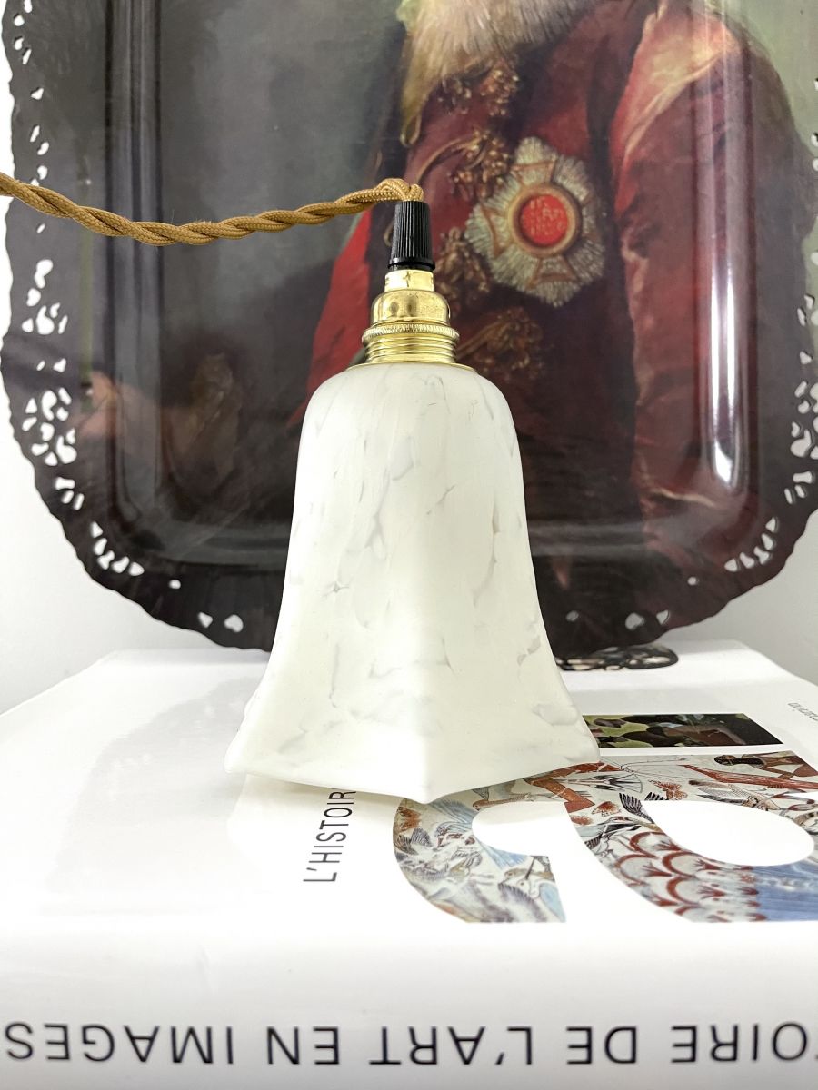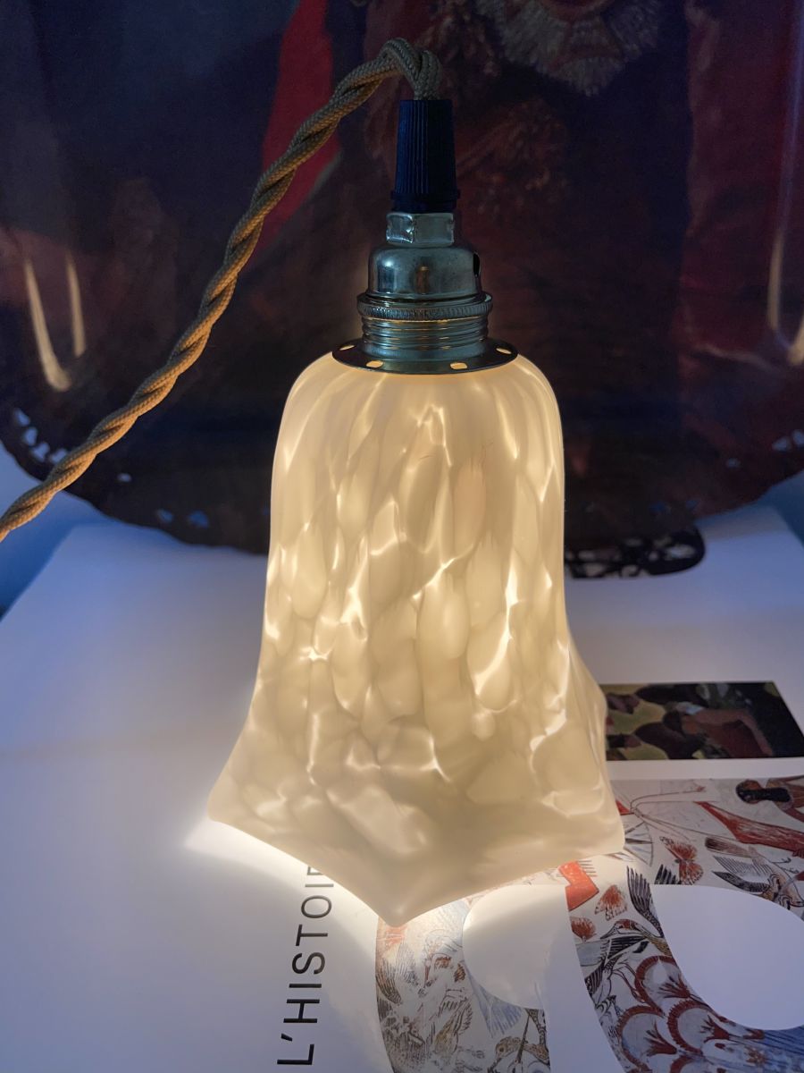 Lampe baladeuse vintage en en verre de Clichy blanc