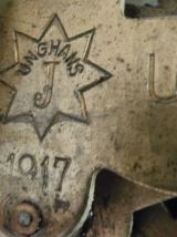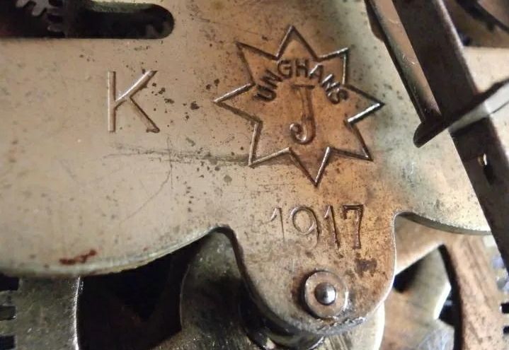 À l'intérieur des machines, vous pouvez voir le logo du fabricant, et entre le logo se trouvent les lettres K U (voir photos jointes), qui correspondent à l'abréviation allemande Königlich Ungarische (Forces armées de l'empire austro-hongrois). Il est à noter que sous le logo, on peut voir l'année de fabrication, qui correspond à 1917 (voir photos jointes). C'est-à-dire que la montre était destinée à être utilisée dans des installations militaires pendant la Première Guerre mondiale.