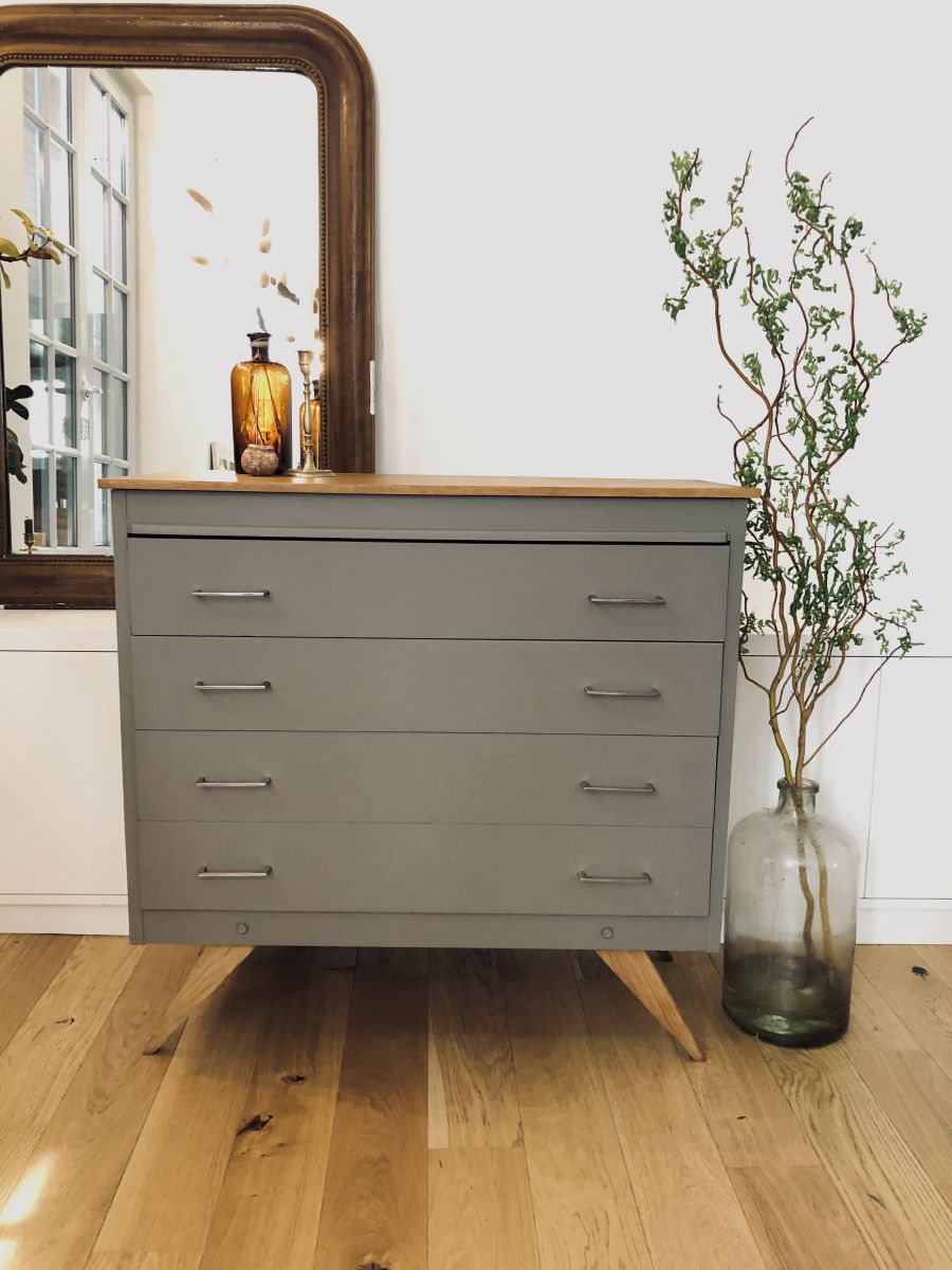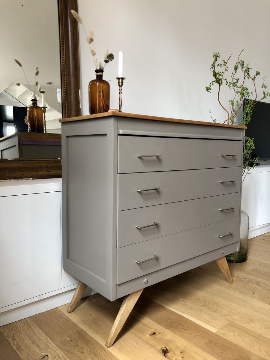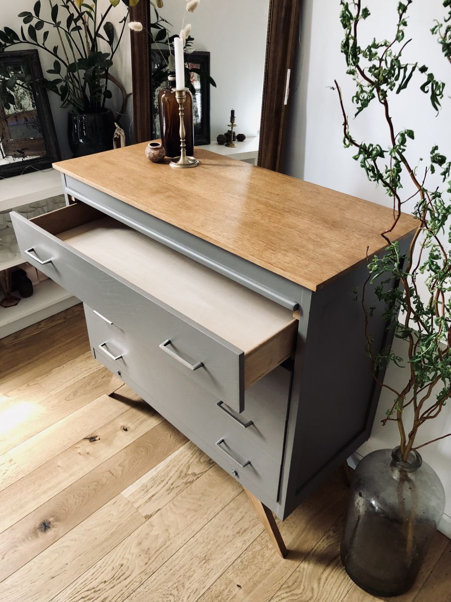 Très belle et élégante commode vintage des années 60 avec de jolis pieds compas.