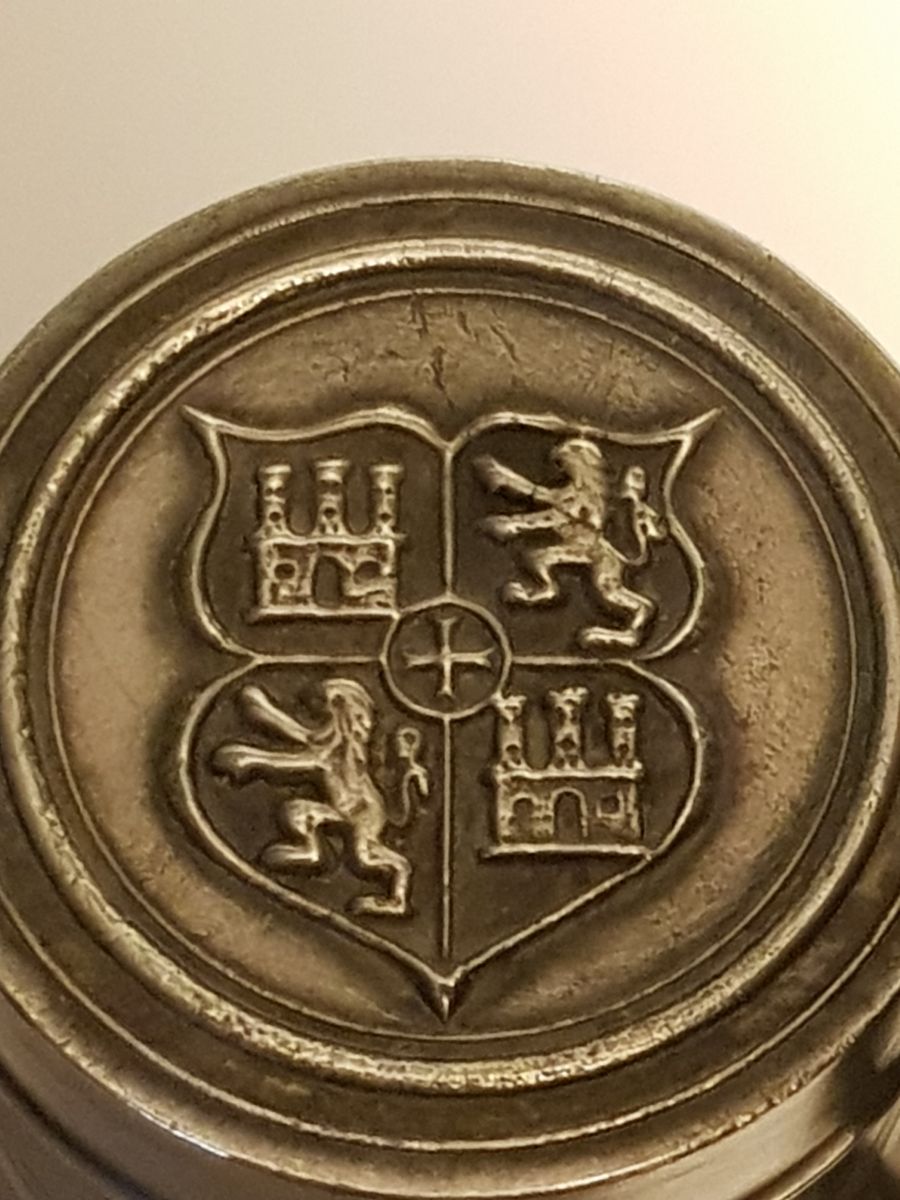 Lampe à huile en étain AM en bon état, le pied est un peu déformé (voir photo). Dimensions : H. 20cm X L. 11cm X P. 8,5cm