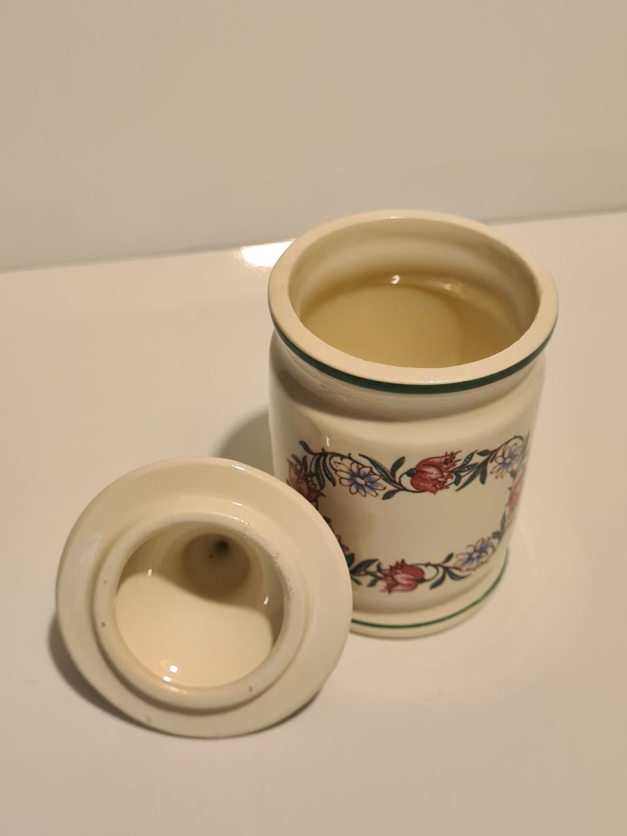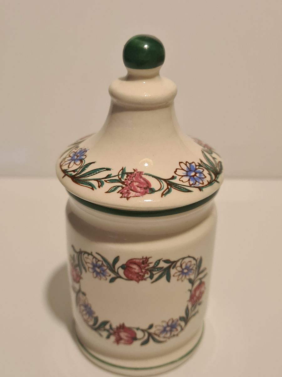 Pot à moutarde Parizot en faience de Digoin Sarguemine décor Floral en excellent état, sans fêle Dimensions : H. 12cm X L. 6cm X P. 6cm