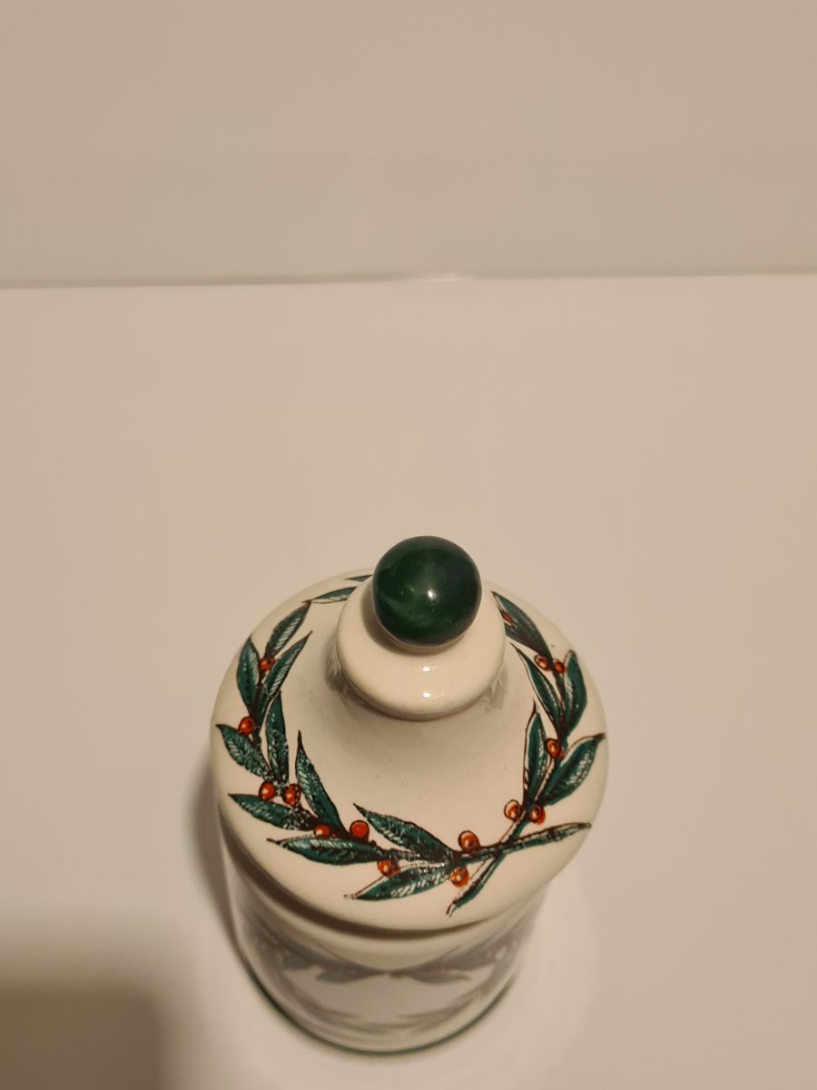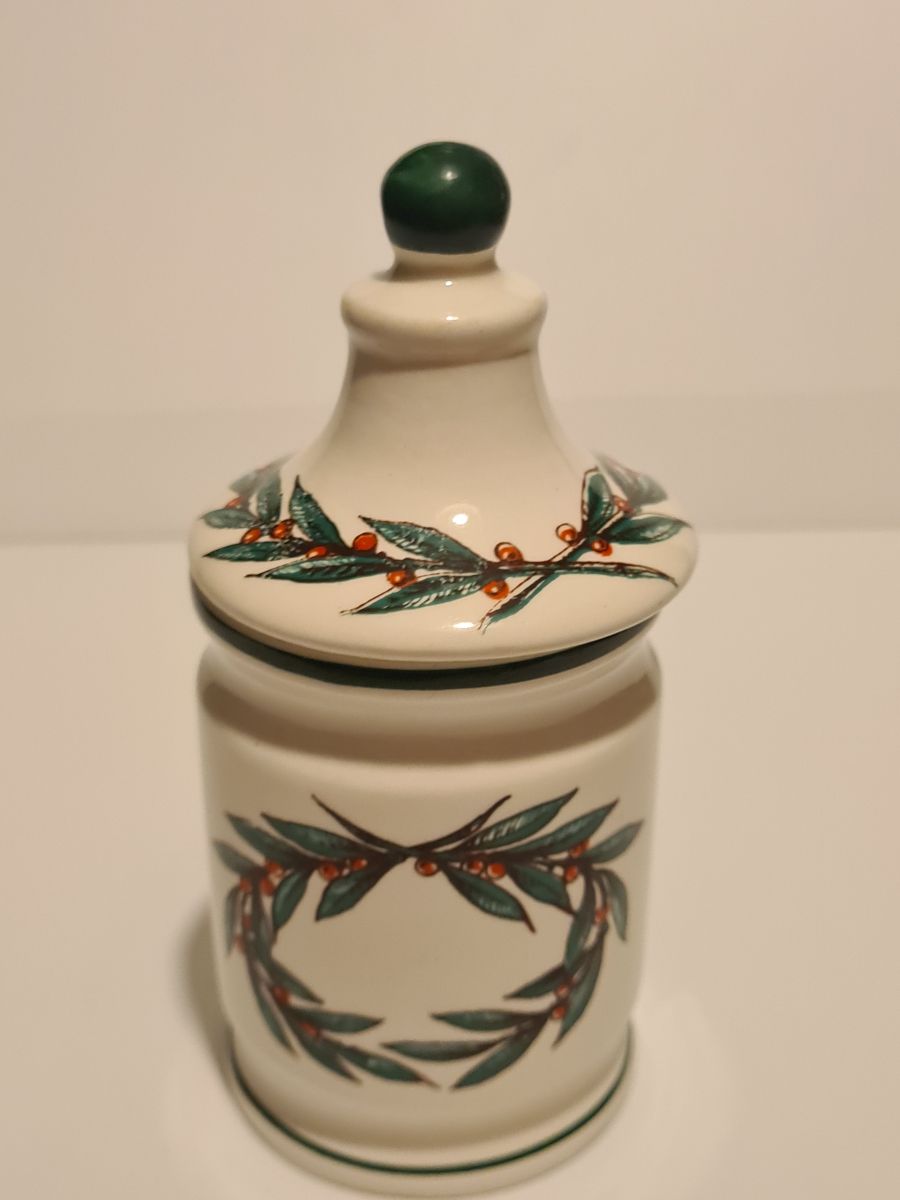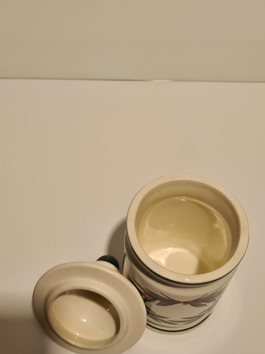 Pot à moutarde Parizot en faïence de Digoin Sarreguemines décor Fruits en excellent état, sans fêle Dimensions : H. 12cm X L. 6cm X P. 6cm