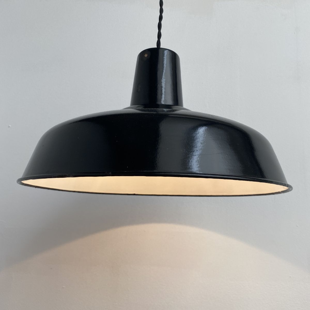 ANCIENNE LAMPE INDUSTRIELLE SUSPENSION EMAILLEE 35,5 CM