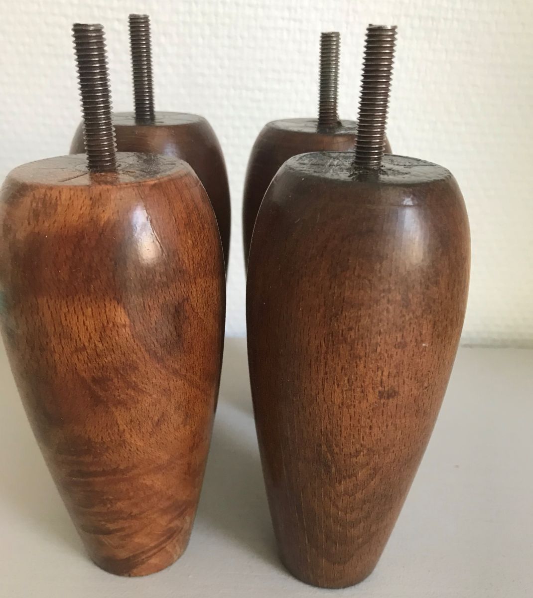 4 pieds compatibles pour lit ou commode trouvés dans un vide grenier. Les pieds étaient dans un état lamentables.