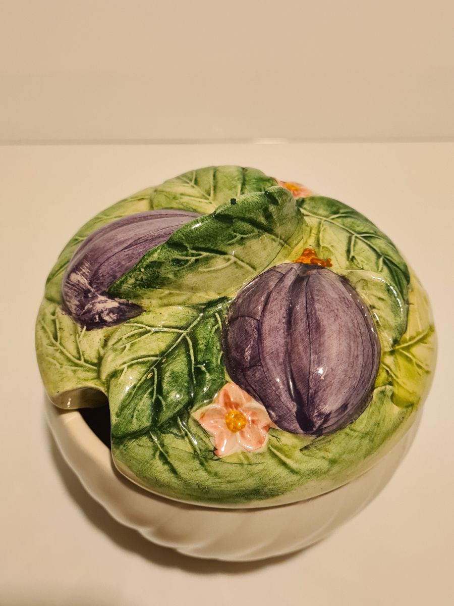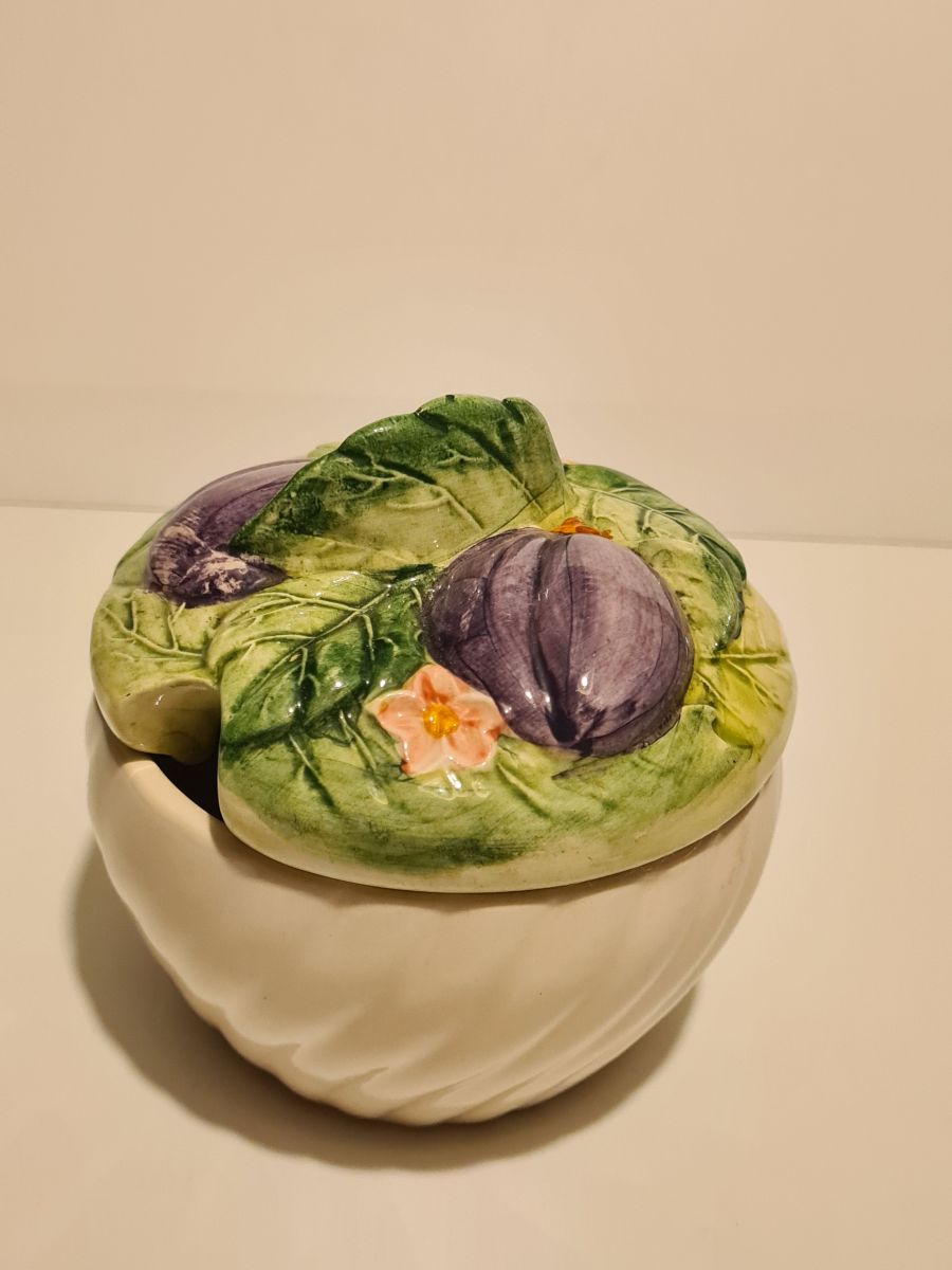 Sucrier céramique décor à la barbotine prunes, sans marque