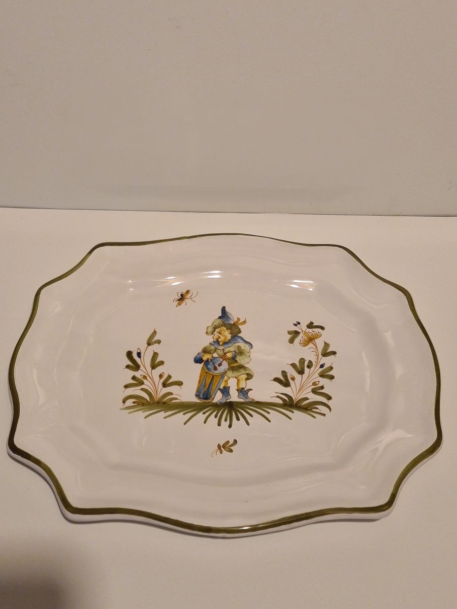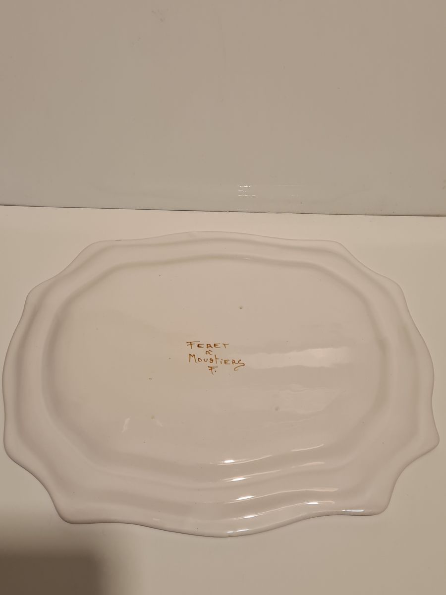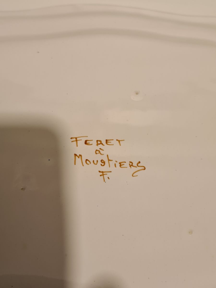 Assiette faïence décorative Féret à Moustier en excellent état, sans fêle Dimensions : H. 1cm X L. 23cm X P. 18cm X 347g