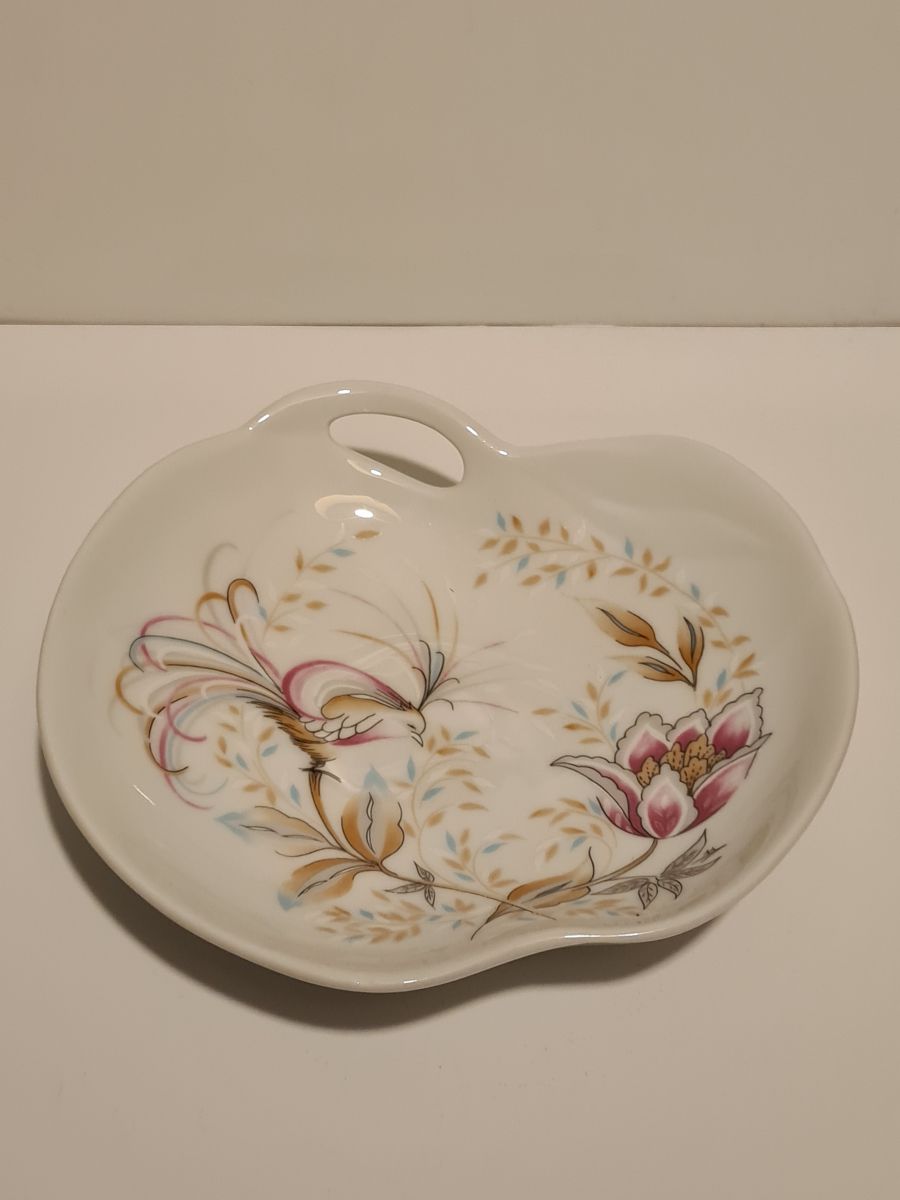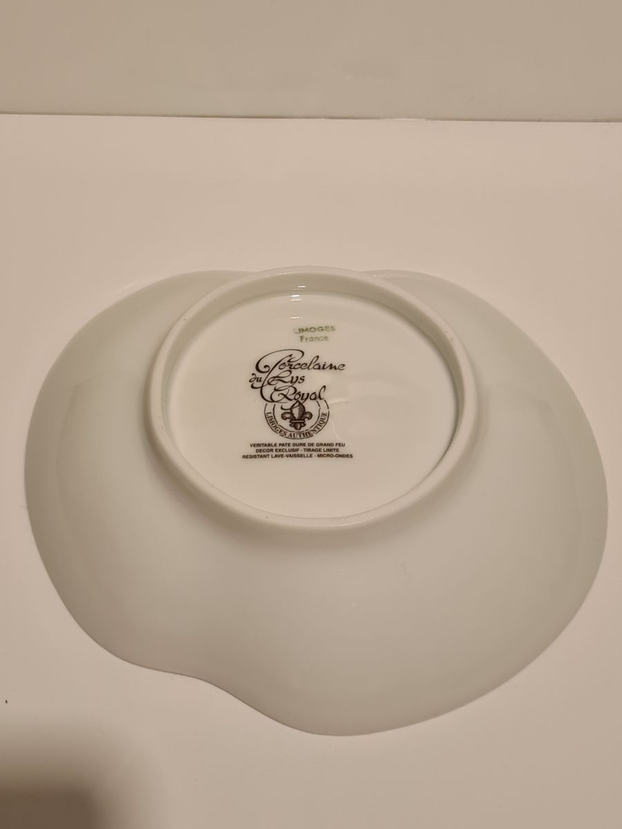 Vide poche Porcelaine du Lys Royal décors fleurs et oiseaux en excellent état, sans fêle Dimensions : H. 4cm X L. 16cm X P. 14cm X 281g