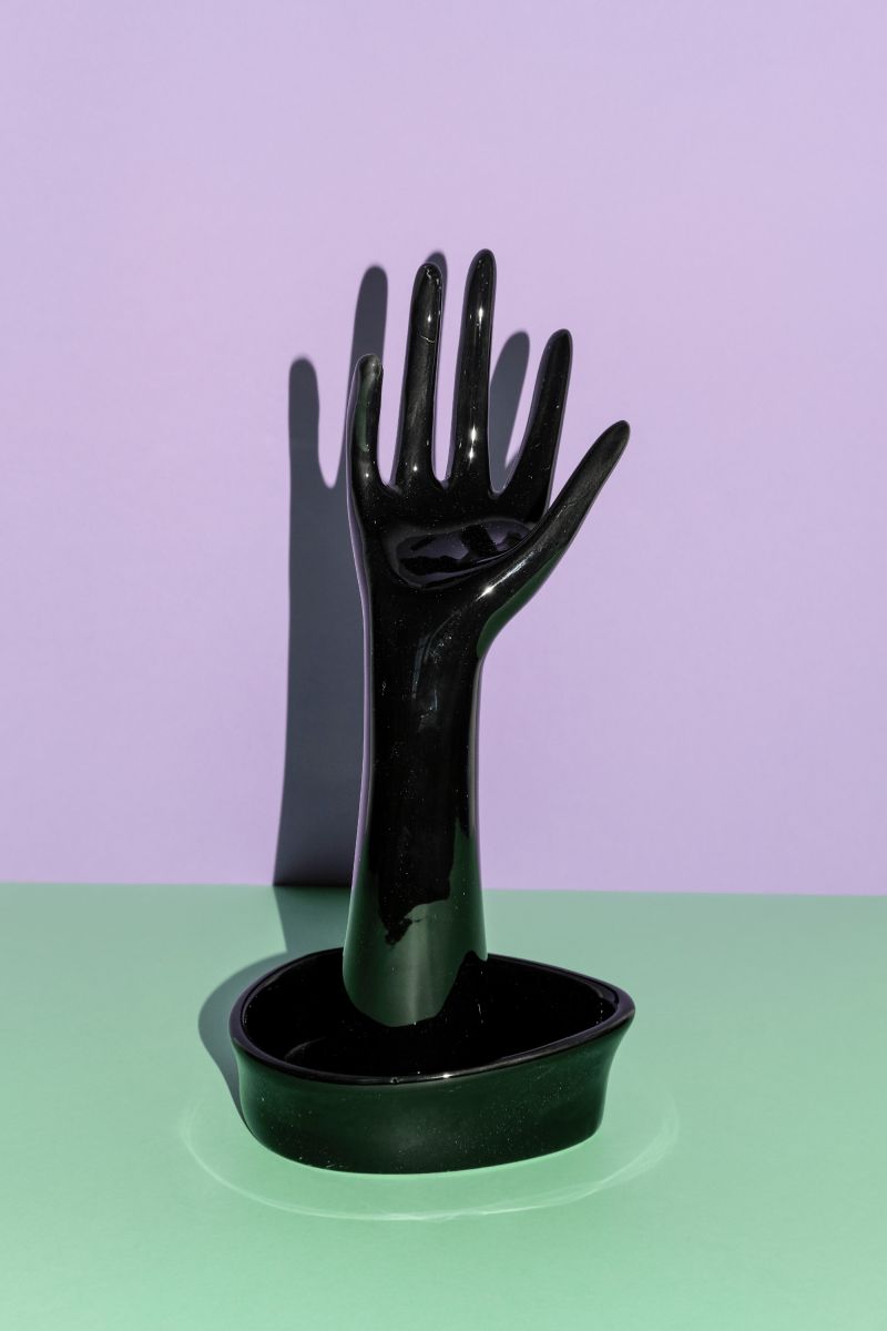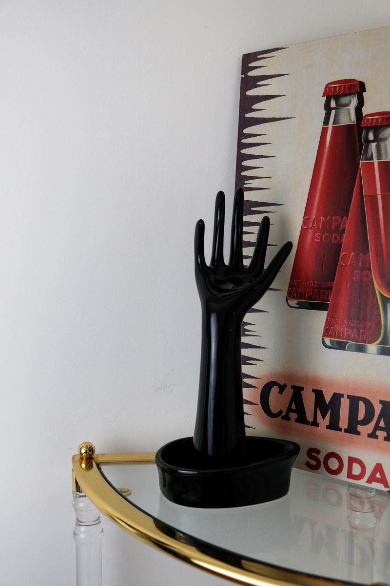 Classique main de baguier noire en céramique avec un rangement pour vos bijoux sur le bas. Un indispensable de déco vintage !