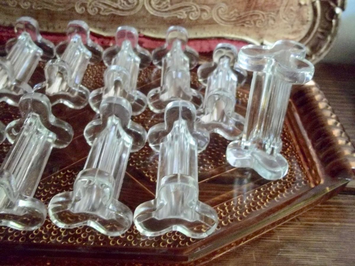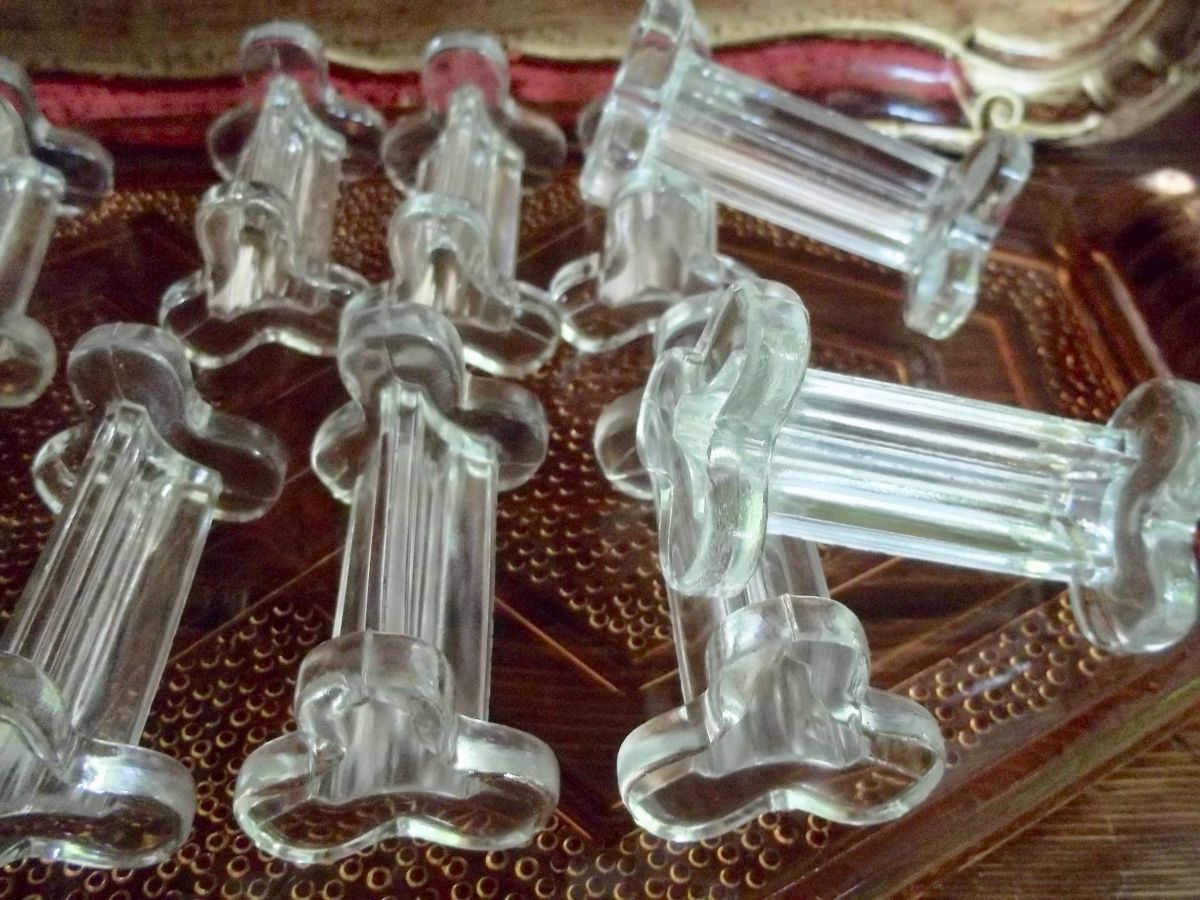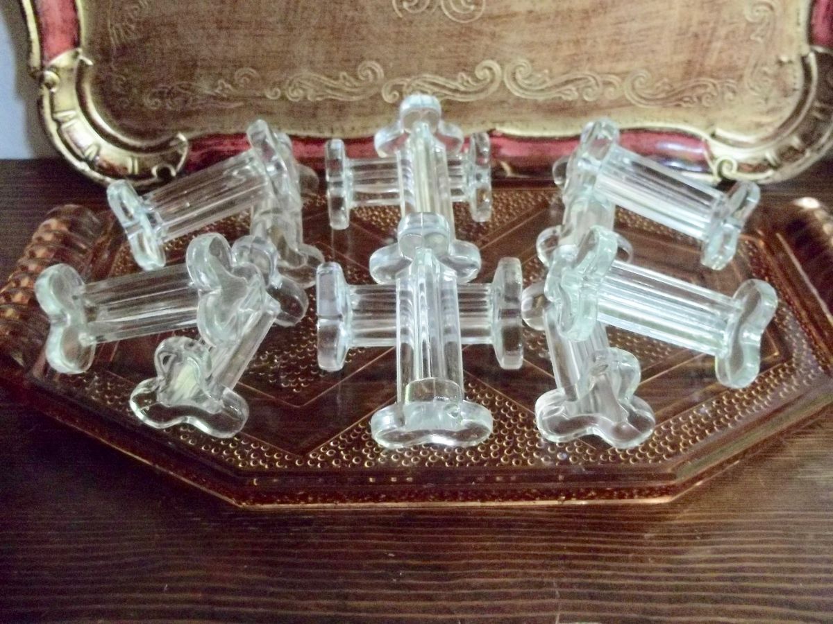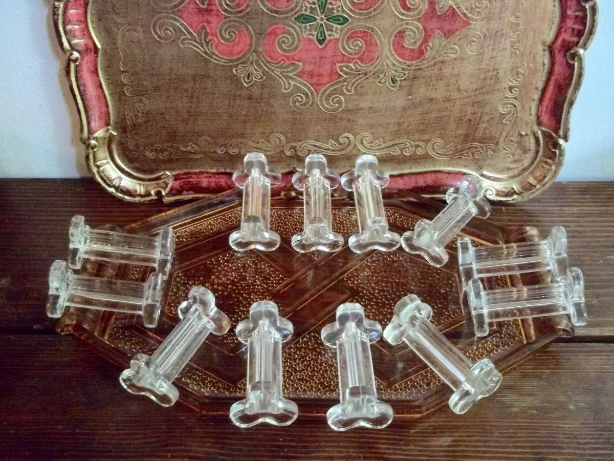 lot de 12 porte-couteaux anciens en verre moulé 1950