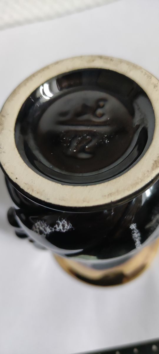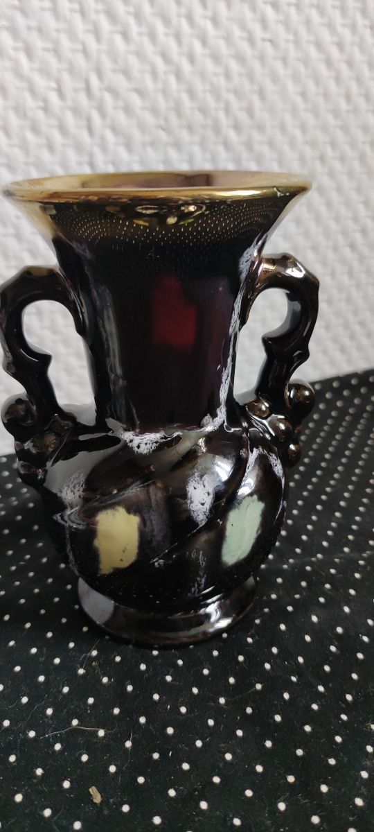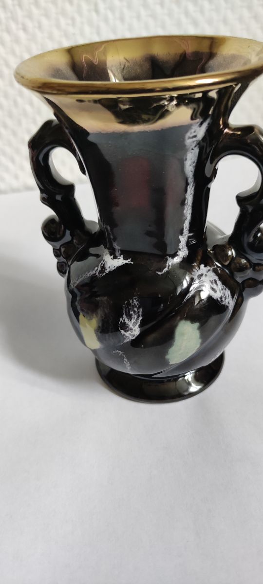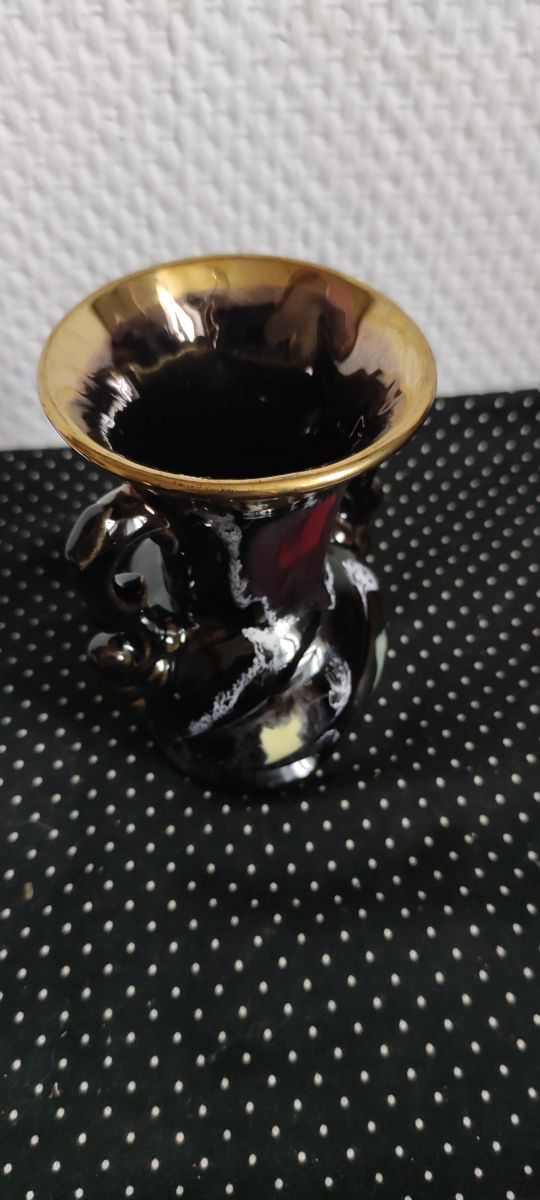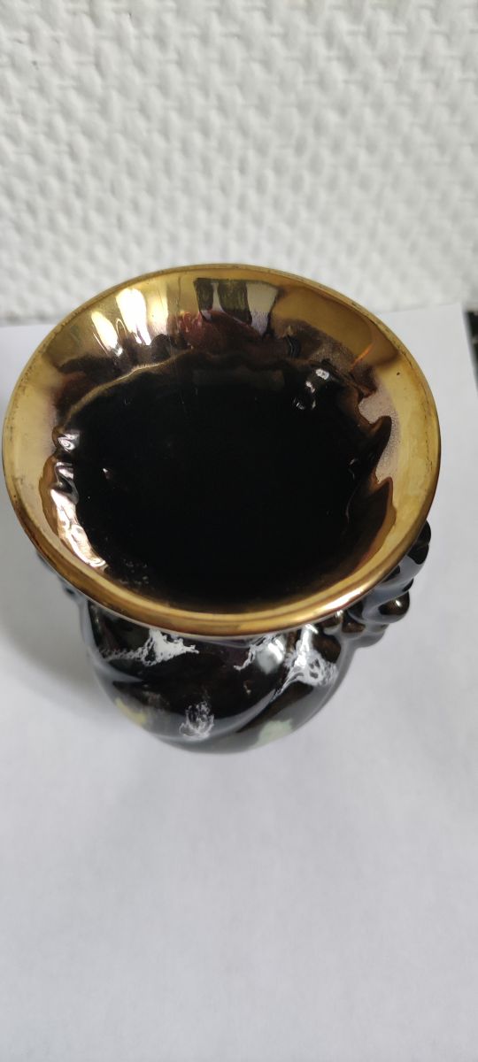 Vase avec 2 anses en céramique doré allemande Jasba Keramic . Numéro 538/12 . Hauteur 12 cm , Diamètre 8 cm .