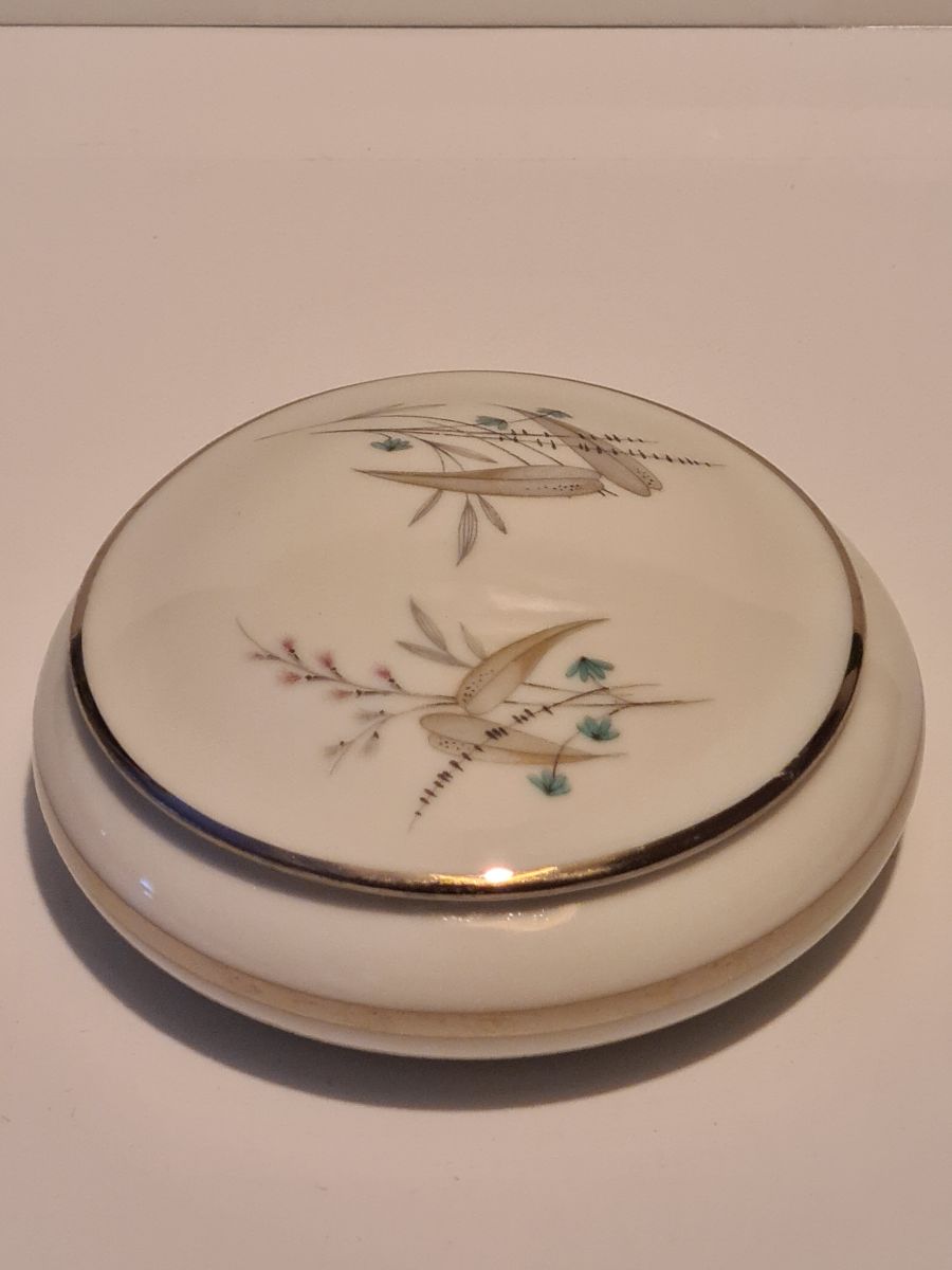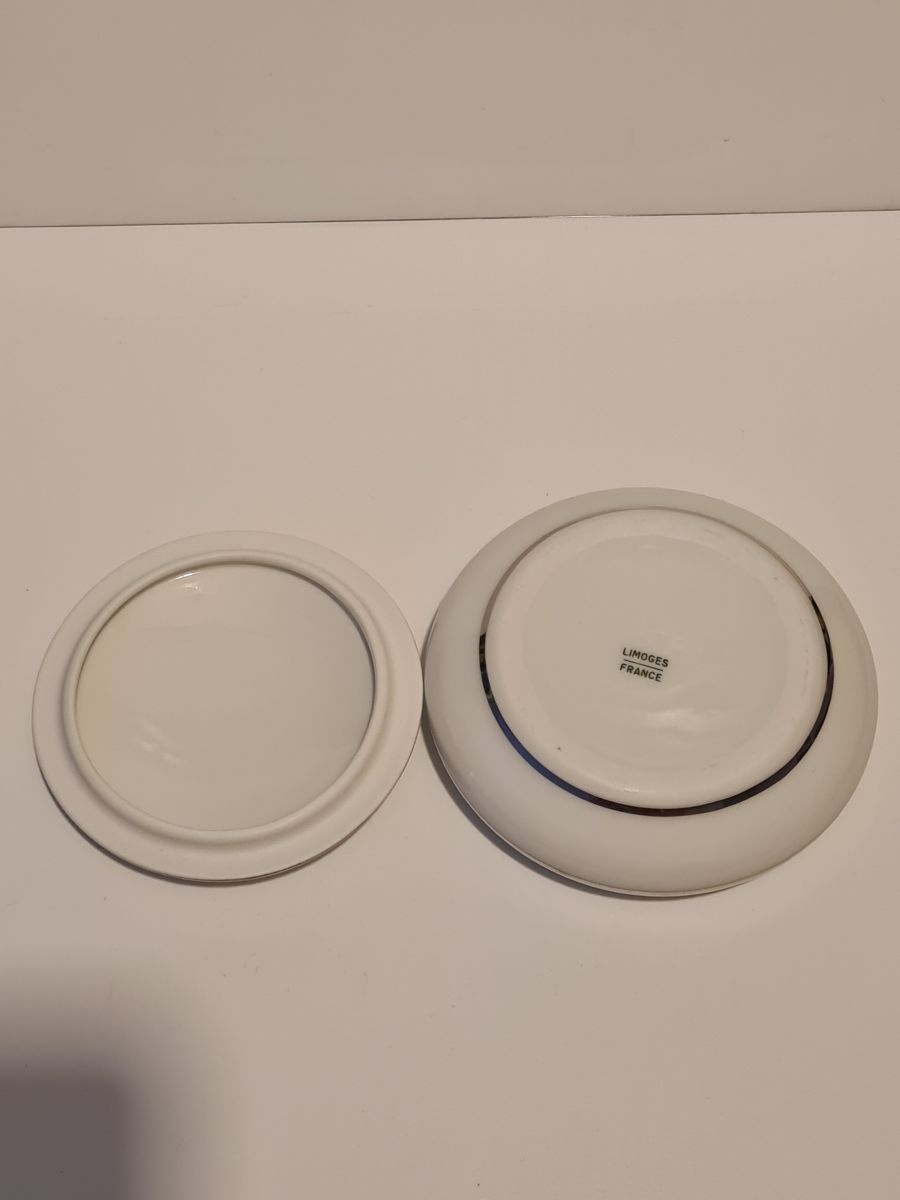 Bonbonnière Porcelaine de Limoges décors Floral en excellent état, sans fêle Dimensions : H. 3,5cm X L. 11cm X P. 11cm X 130g