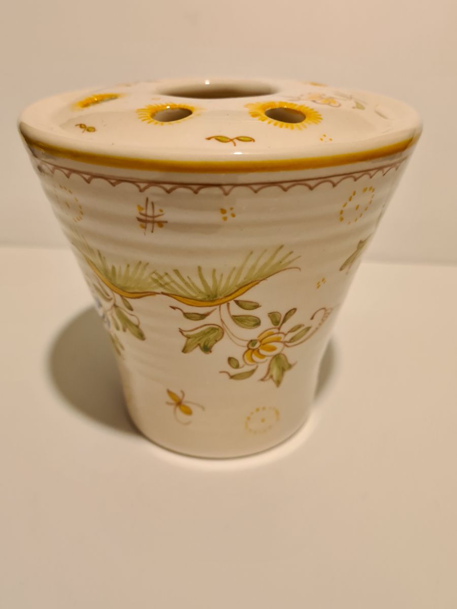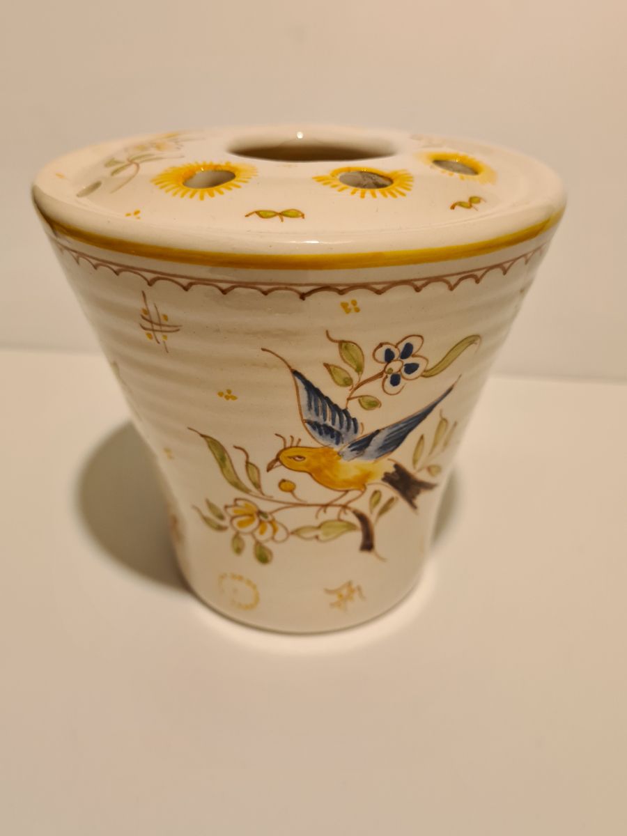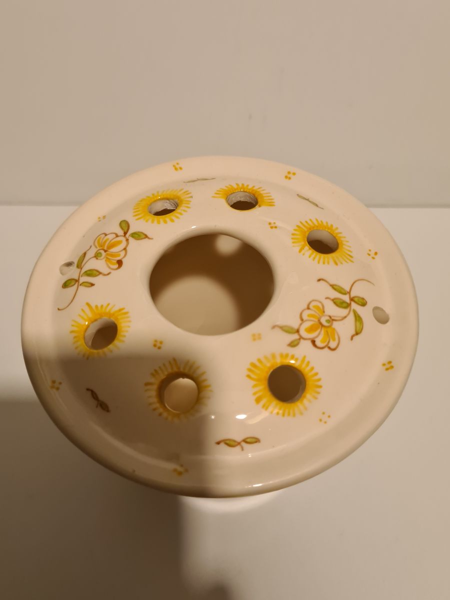 Pique Fleurs Atelier Regnier Desvres paint à la main en excellent état, sans fêle Dimensions : H. 10,5cm X L. 10,5cm X P. 10,5cm X 326g