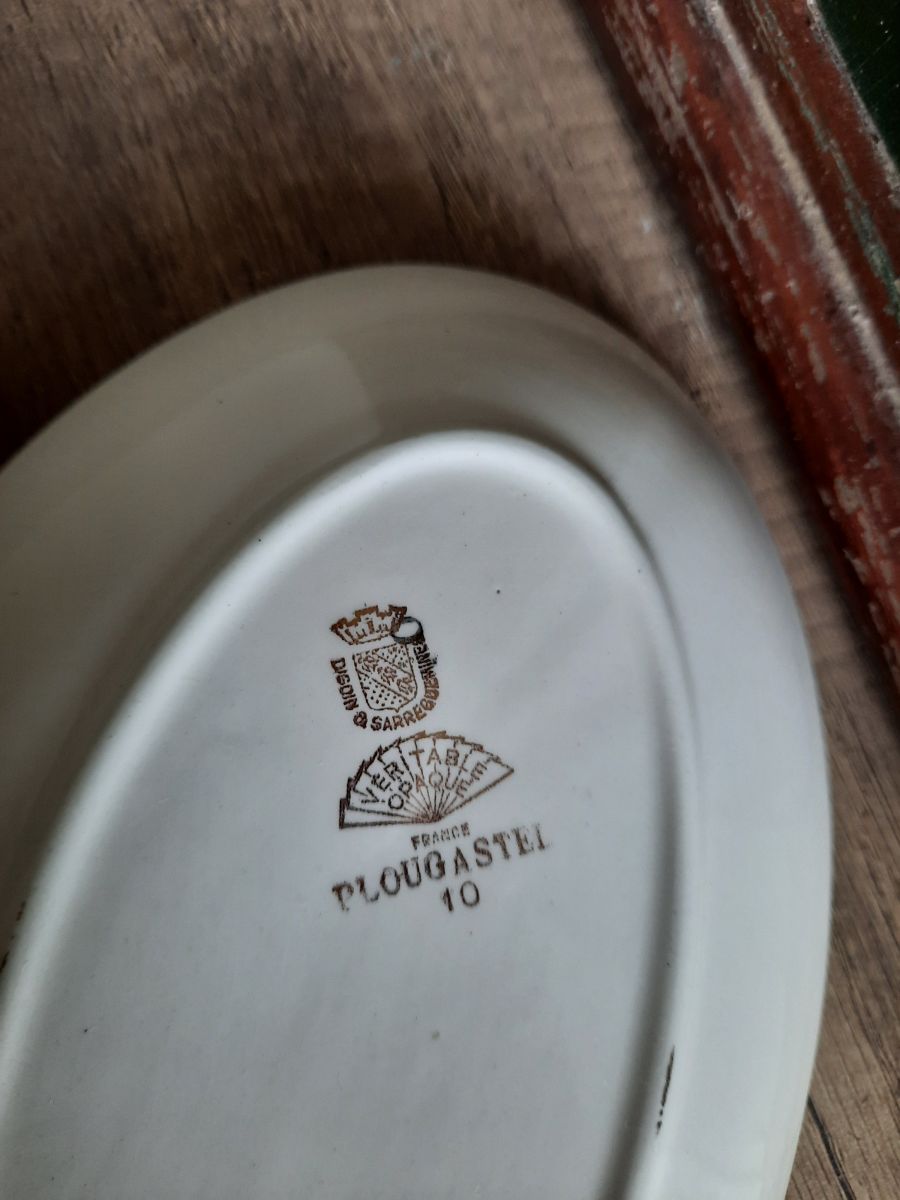 Petit plat / ravier, estampillé Digoin et Sarreguemines, véritable opaque, modèle Plougastel.