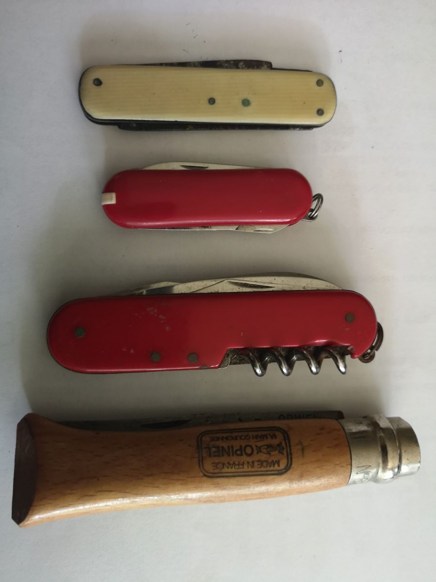 LOT de 4 canifs d'occasion dont un petit Opinel