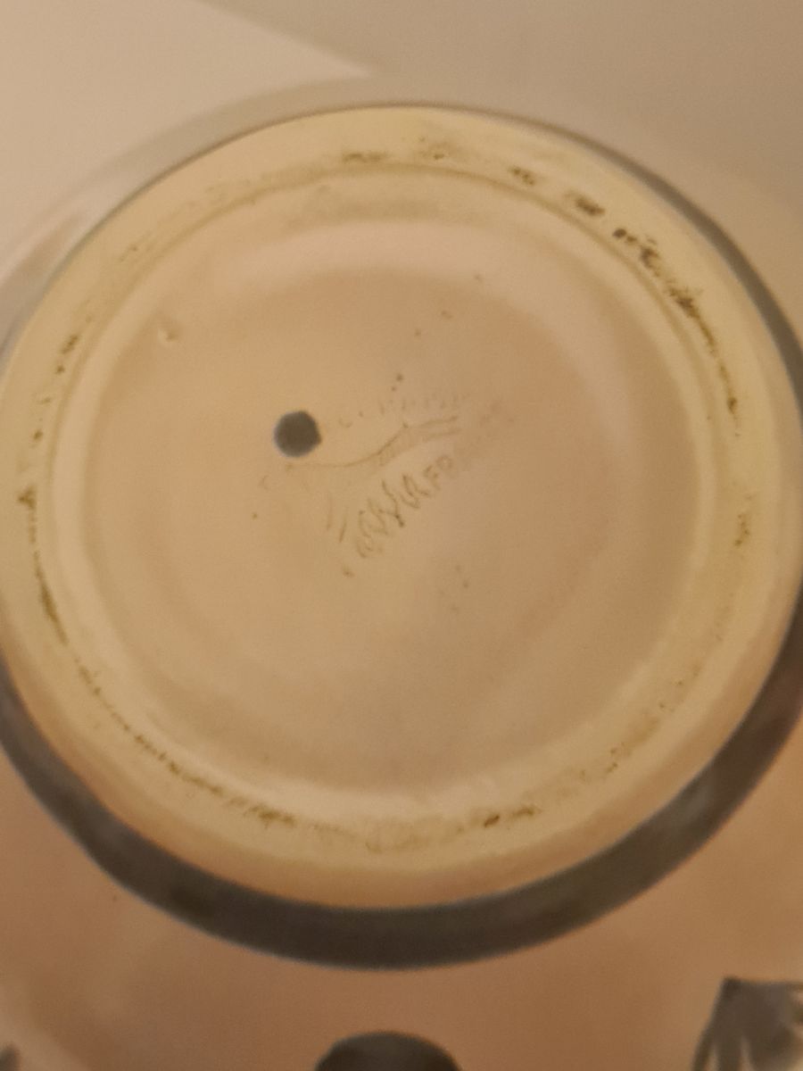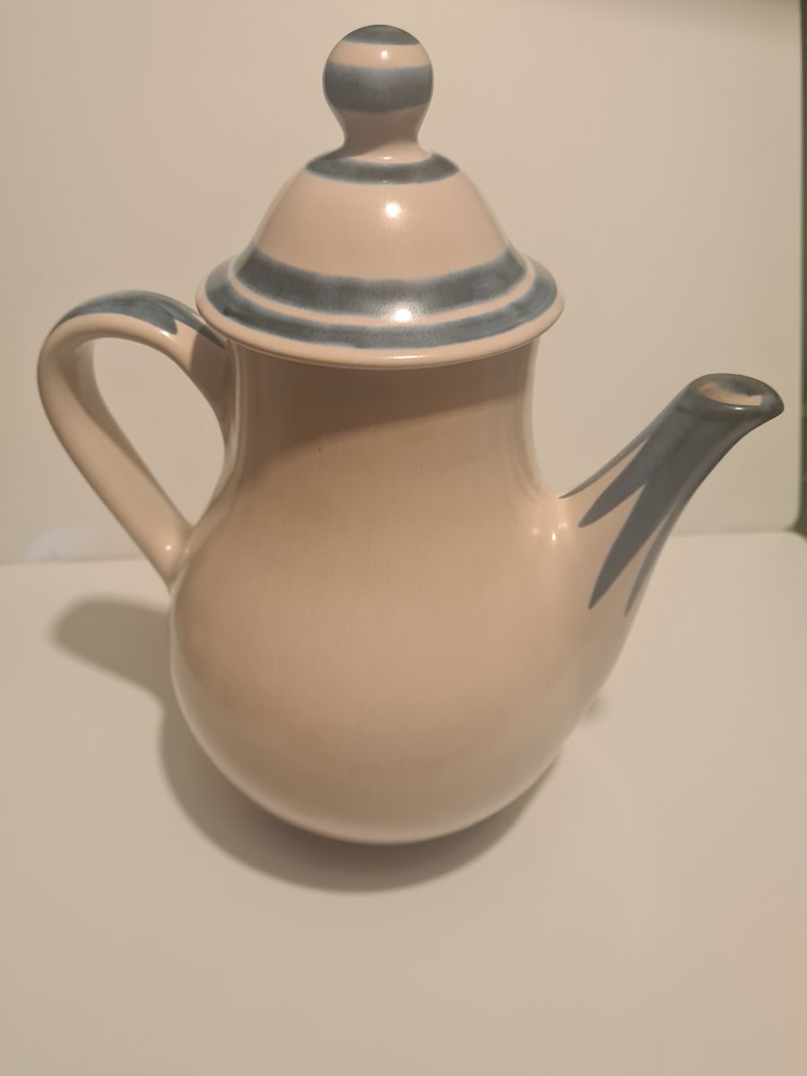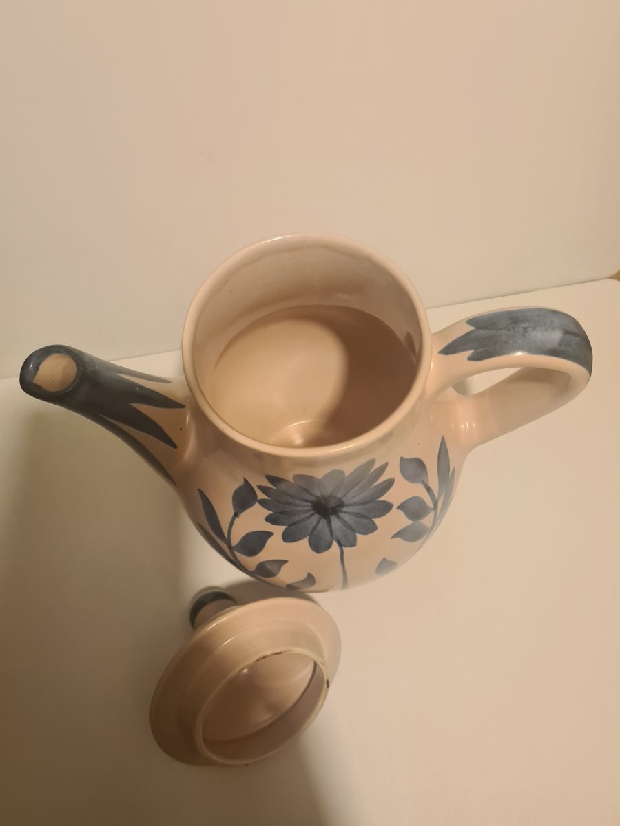 Cafetière en céramique de Longchamp au décor floral bleu en excellent état, sans fêle Dimensions : H. 25,5cm X L. 20,5cm X P. 14,5cm X 763g