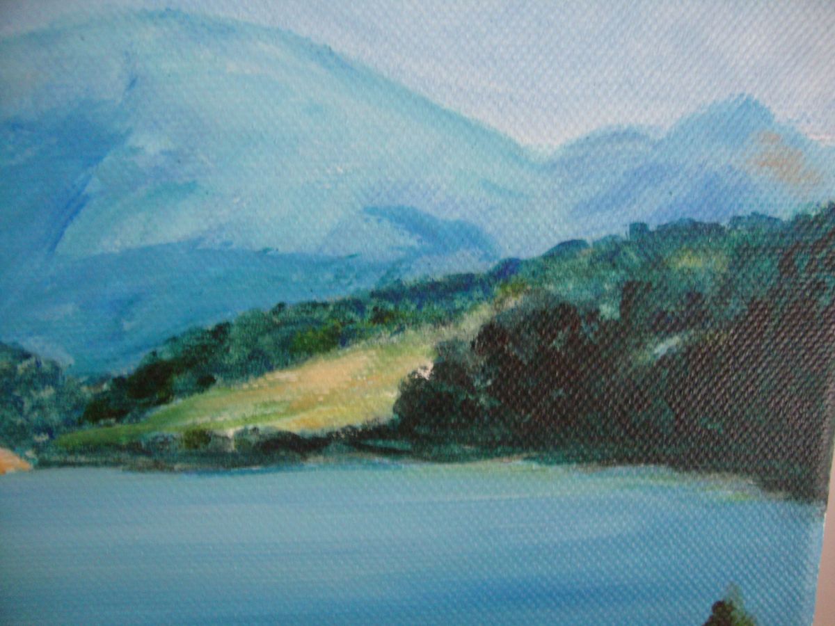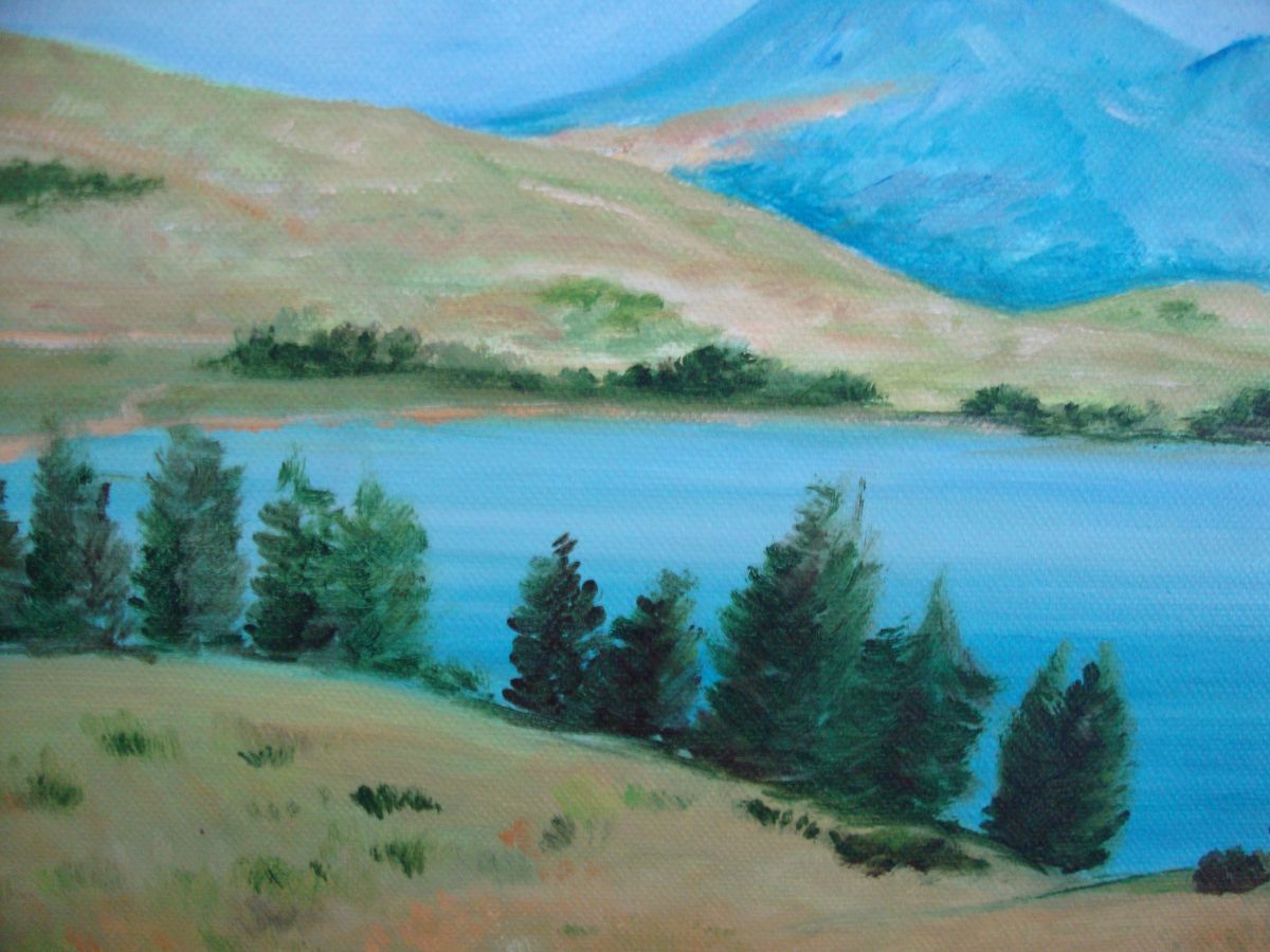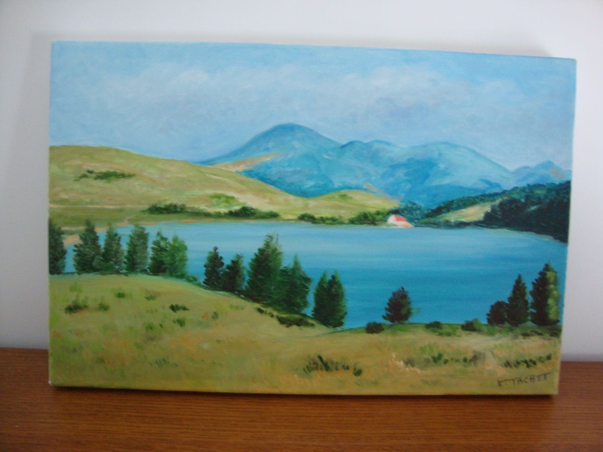 Tableau Peinture huile sur toile représentant un lac d'auvergne