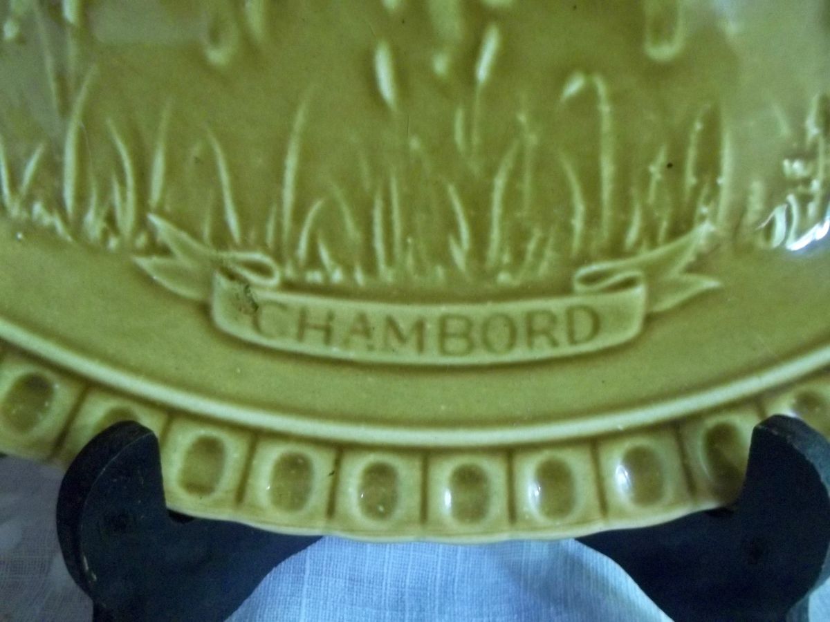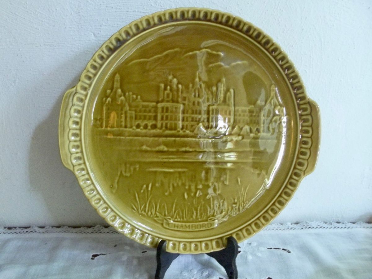 plat à tarte -gâteau vintage en faÏence barbotine de Gien Chambord