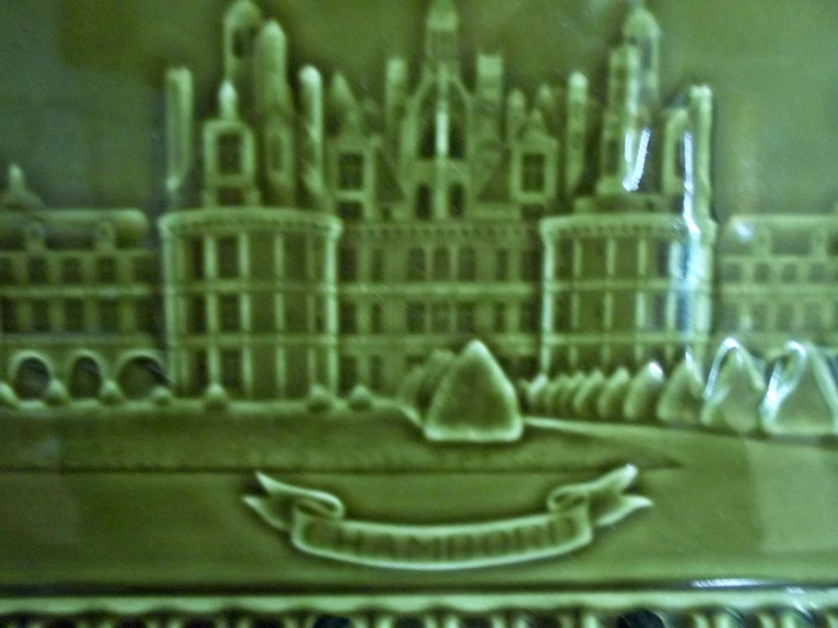 plat à cake vintage en faÏence barbotine de Gien Chambord