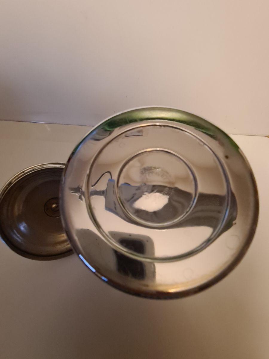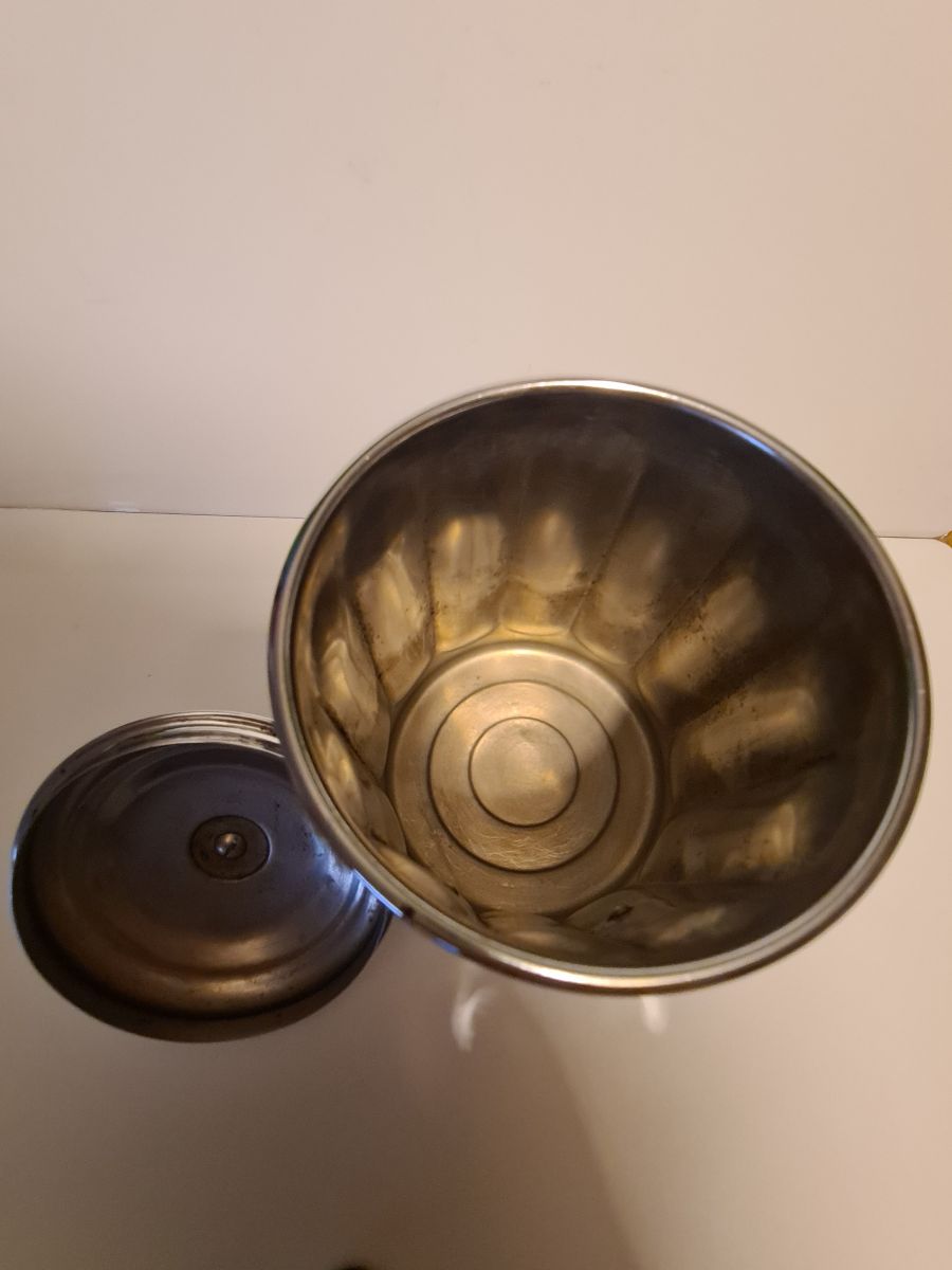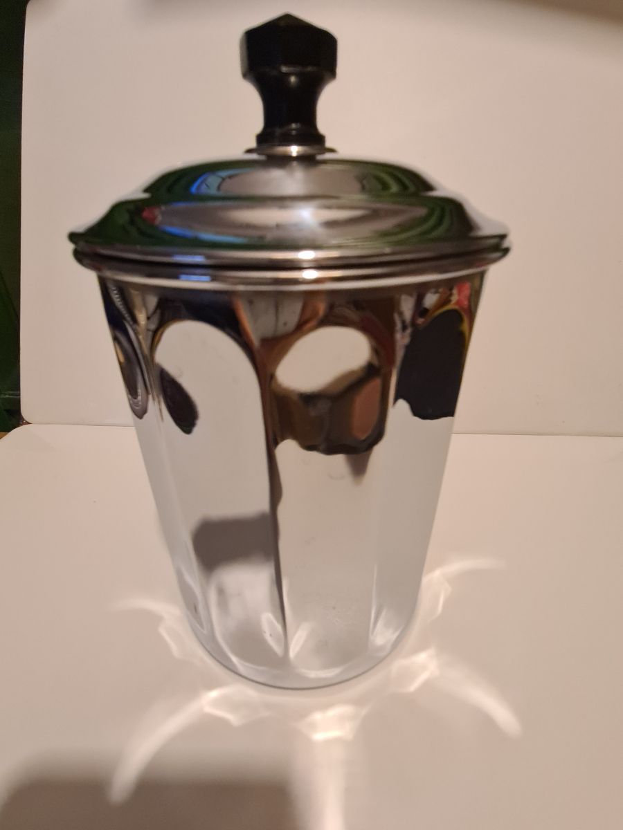 Pot à café en cuivre Chromé marque déposé en bon état, quelques traces d'usages Dimensions : H. 17,5cm X L. 11cm X P. 11cm X 317g
