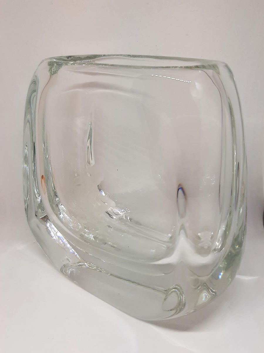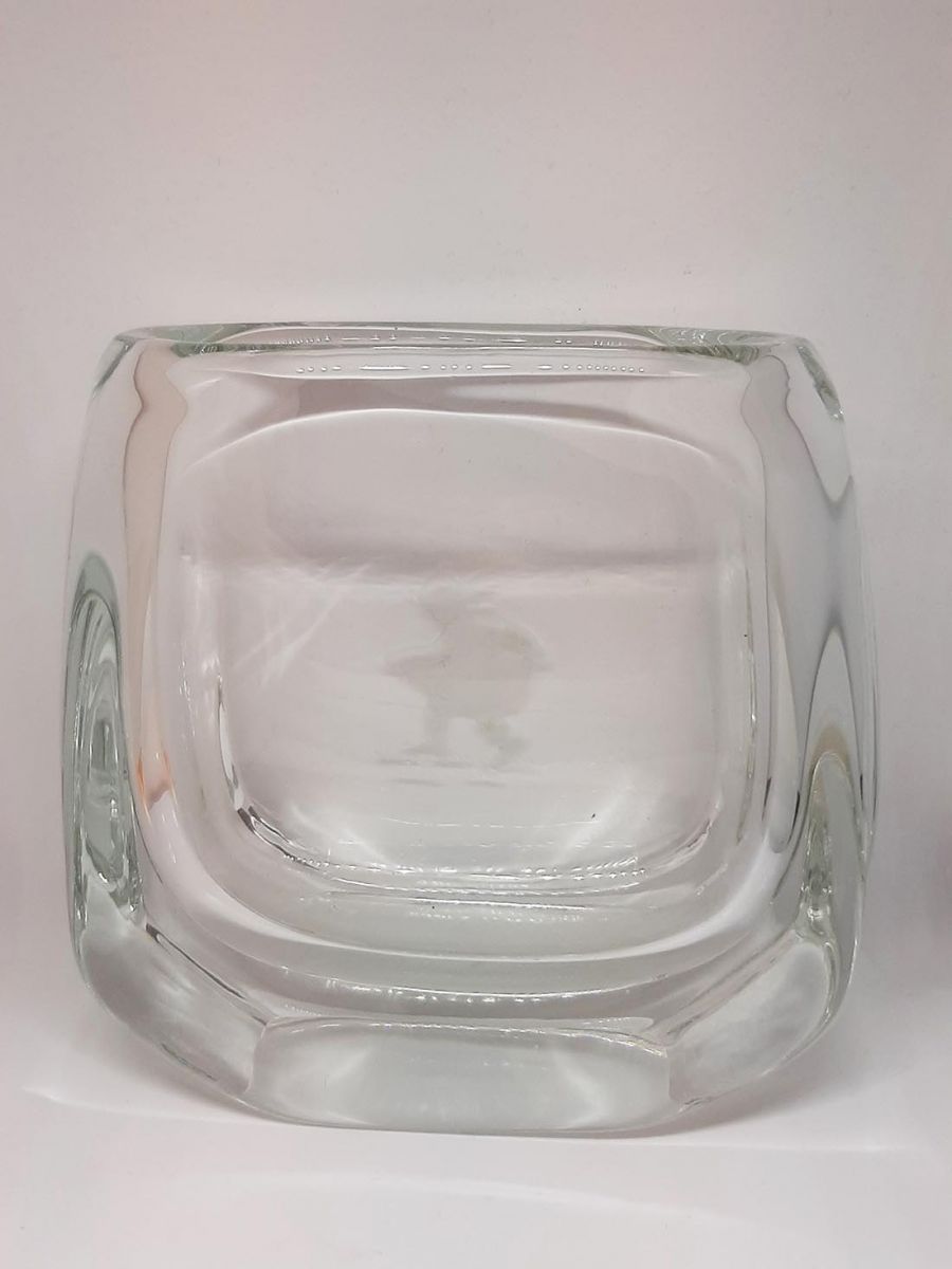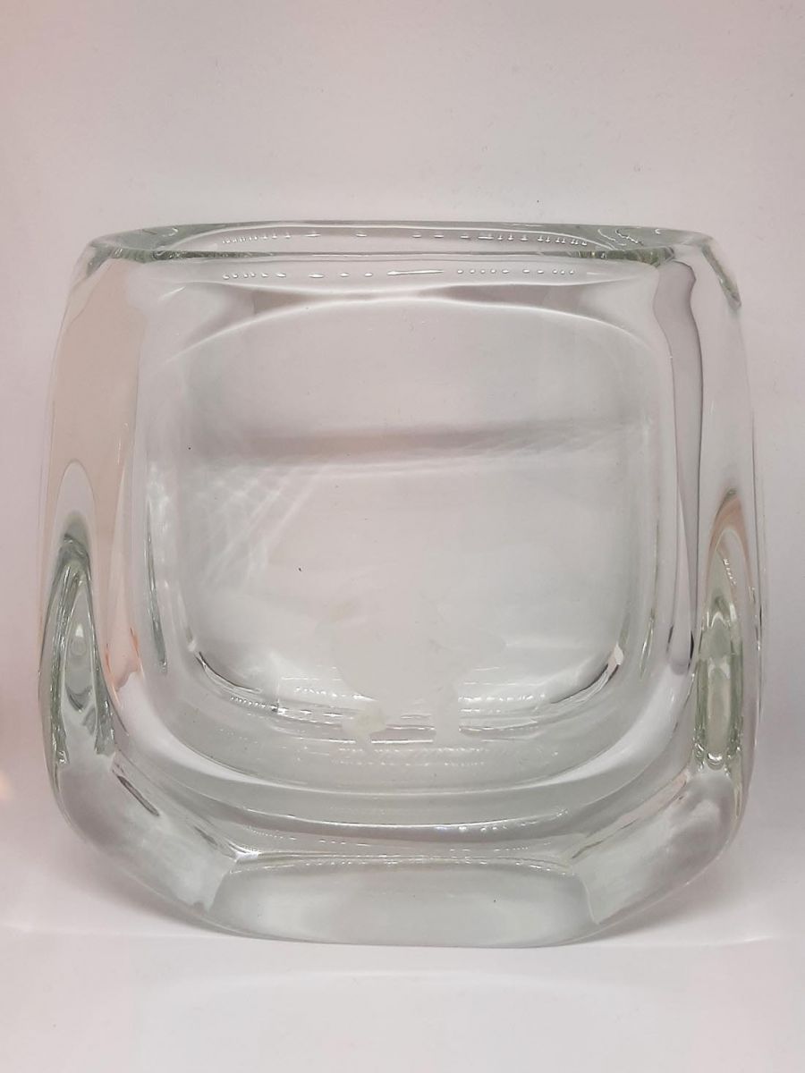Vase vintage en cristal de marque Orrefors avec petite fille gravée. Ce vase est élégant, il peut servir pour des fleurs ou comme vide-poches.