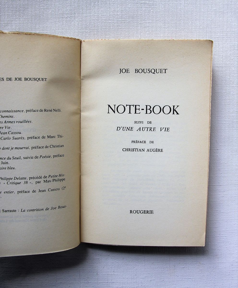 Note-book suivi d'une autre vie - Joe Bousquet. Ed Rougerie