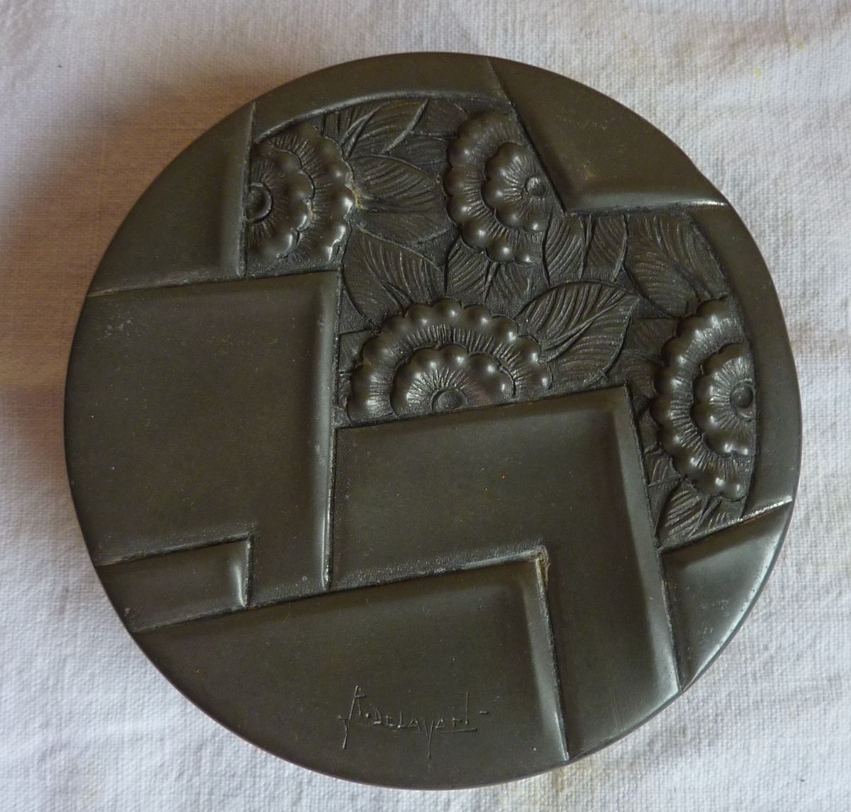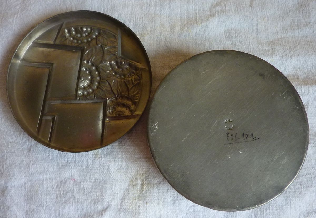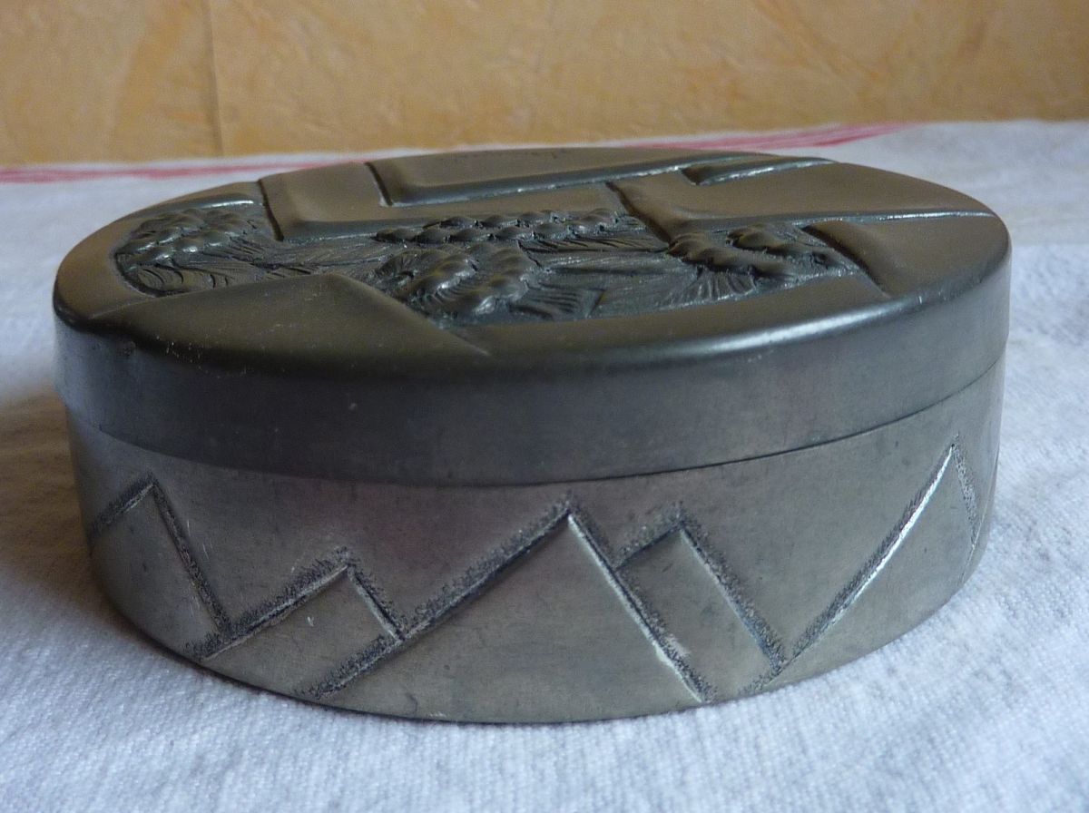 Rare bonbonnière en étain repoussé René Delavan style Art