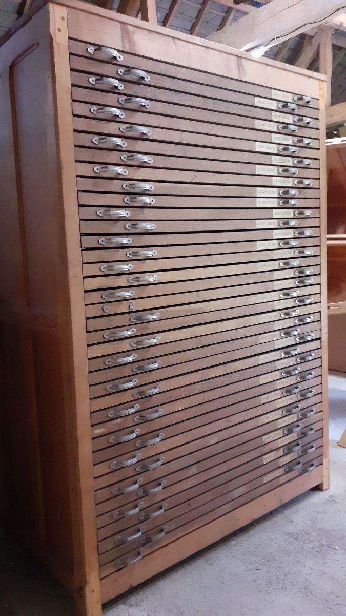 Les tiroirs sont en Chênes en façade et frênes pour le reste, les fonds sont en alu je pense.