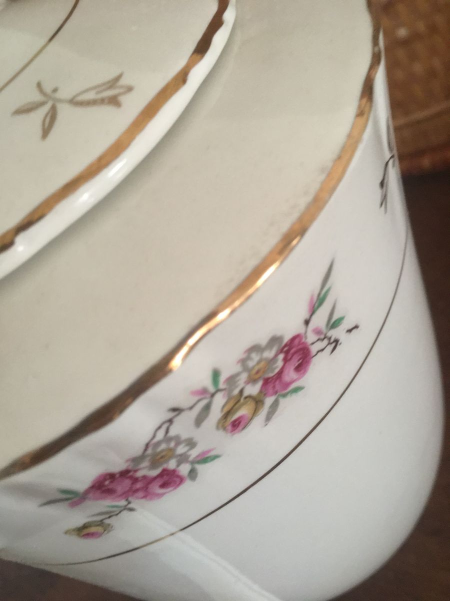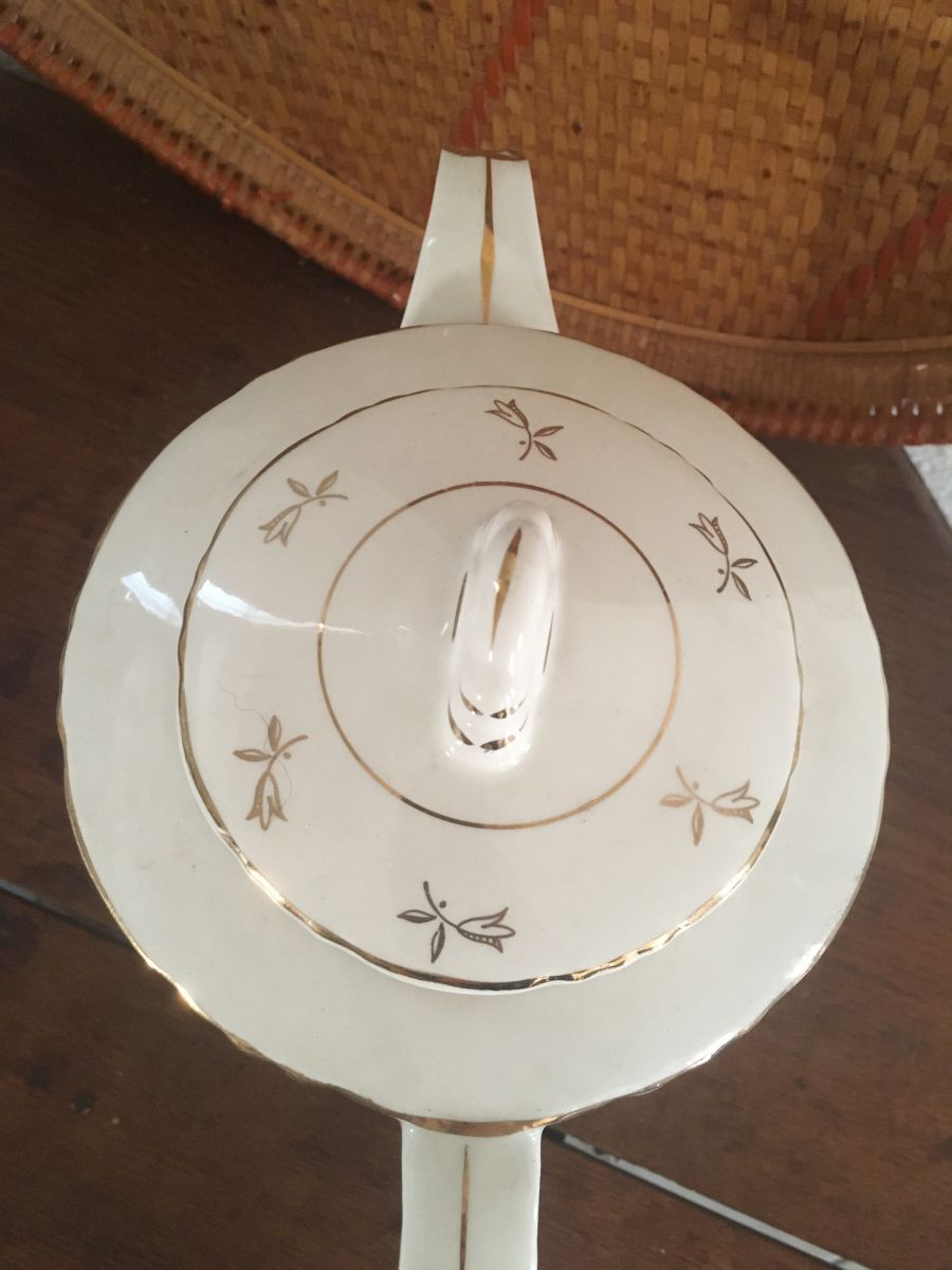 Cafetière porcelaine à la bordure fleurie.