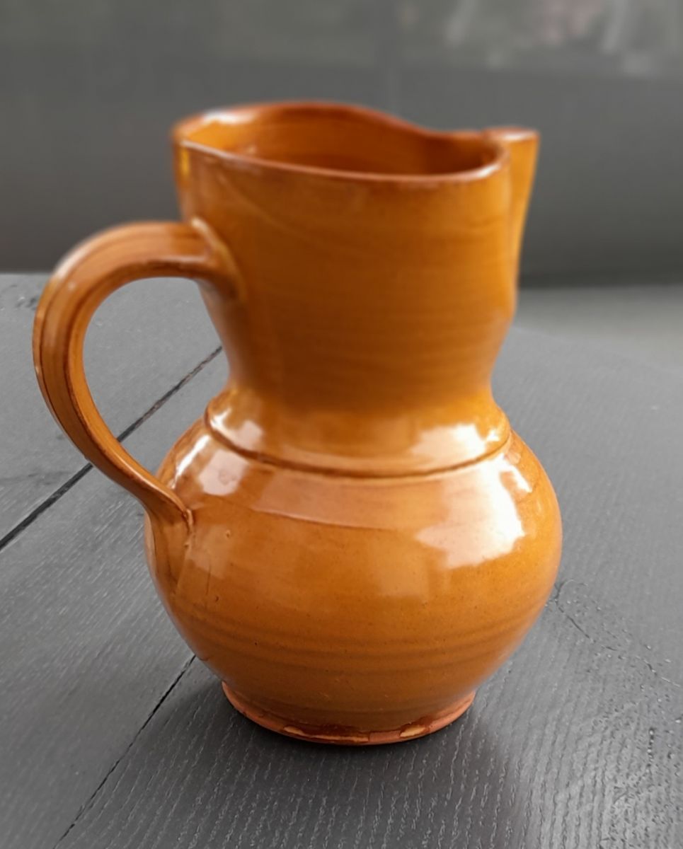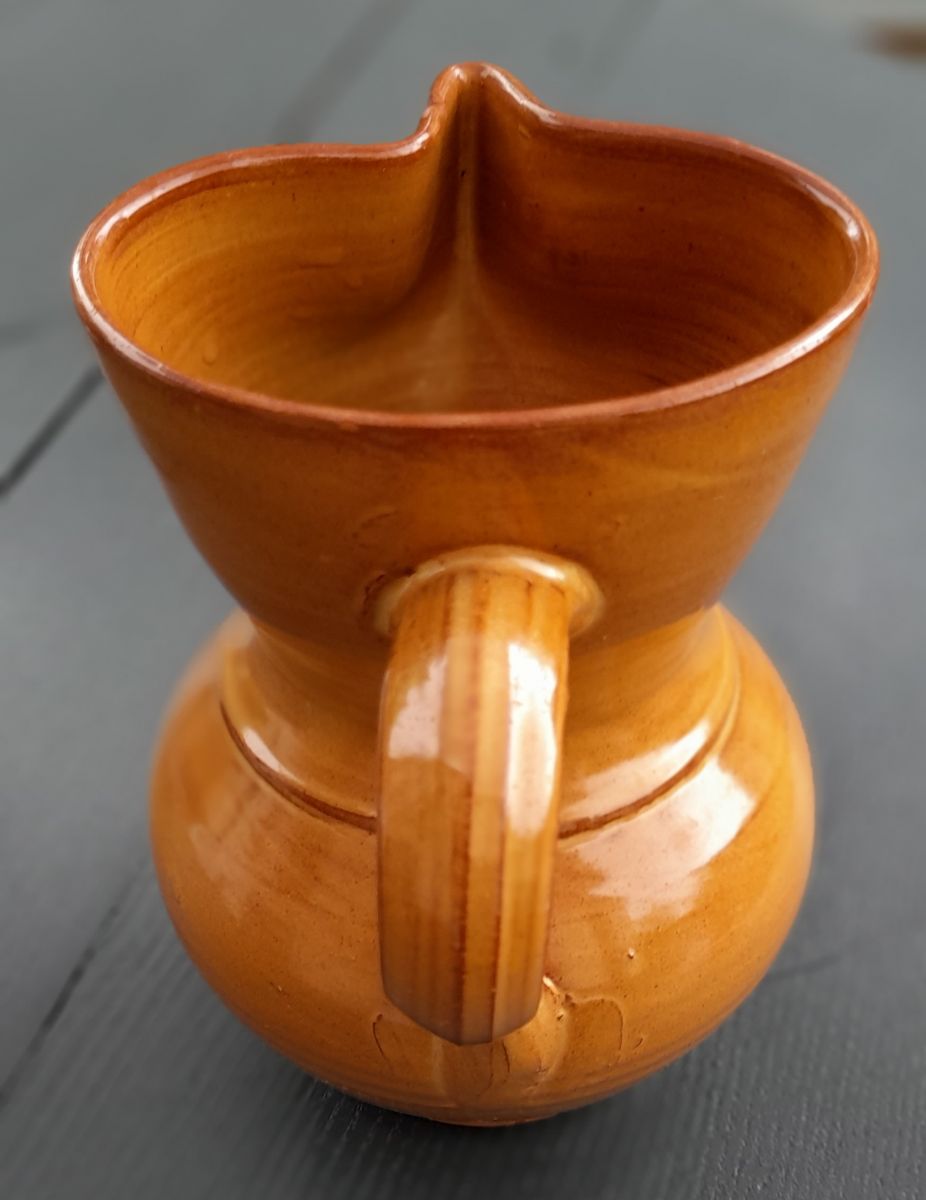 Pichet à cidre bec pincé, marron camel , vers 70's