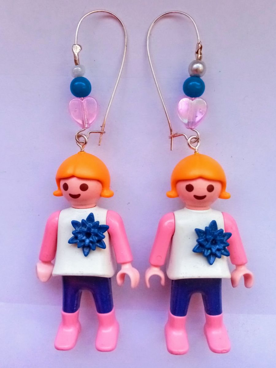 Boucles d'oreilles Playmobil/argenté/blanc/rose/bleu