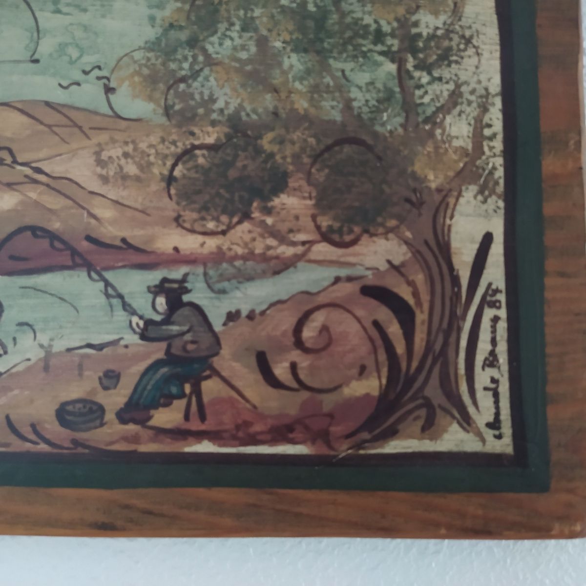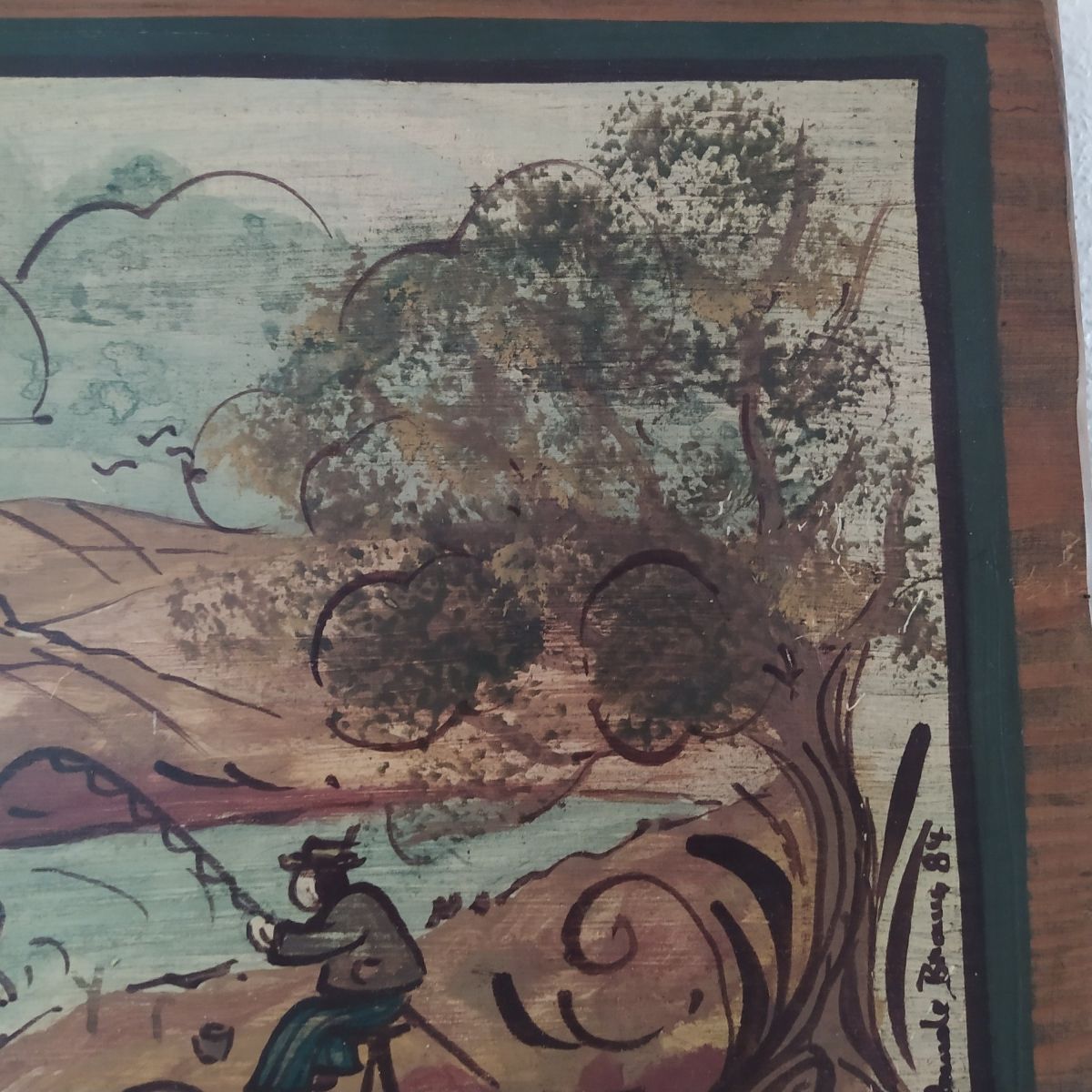 Tableau de 1984 du peintre plasticien, et vidéaste alsacien Claude Braun diplômé des Arts Déco de Strasbourg. Cette œuvre peinte sur bois est à l'opposé de ses œuvres traditionnelles figuratives au graphisme épuré. Mesures 40 x 29 cm.