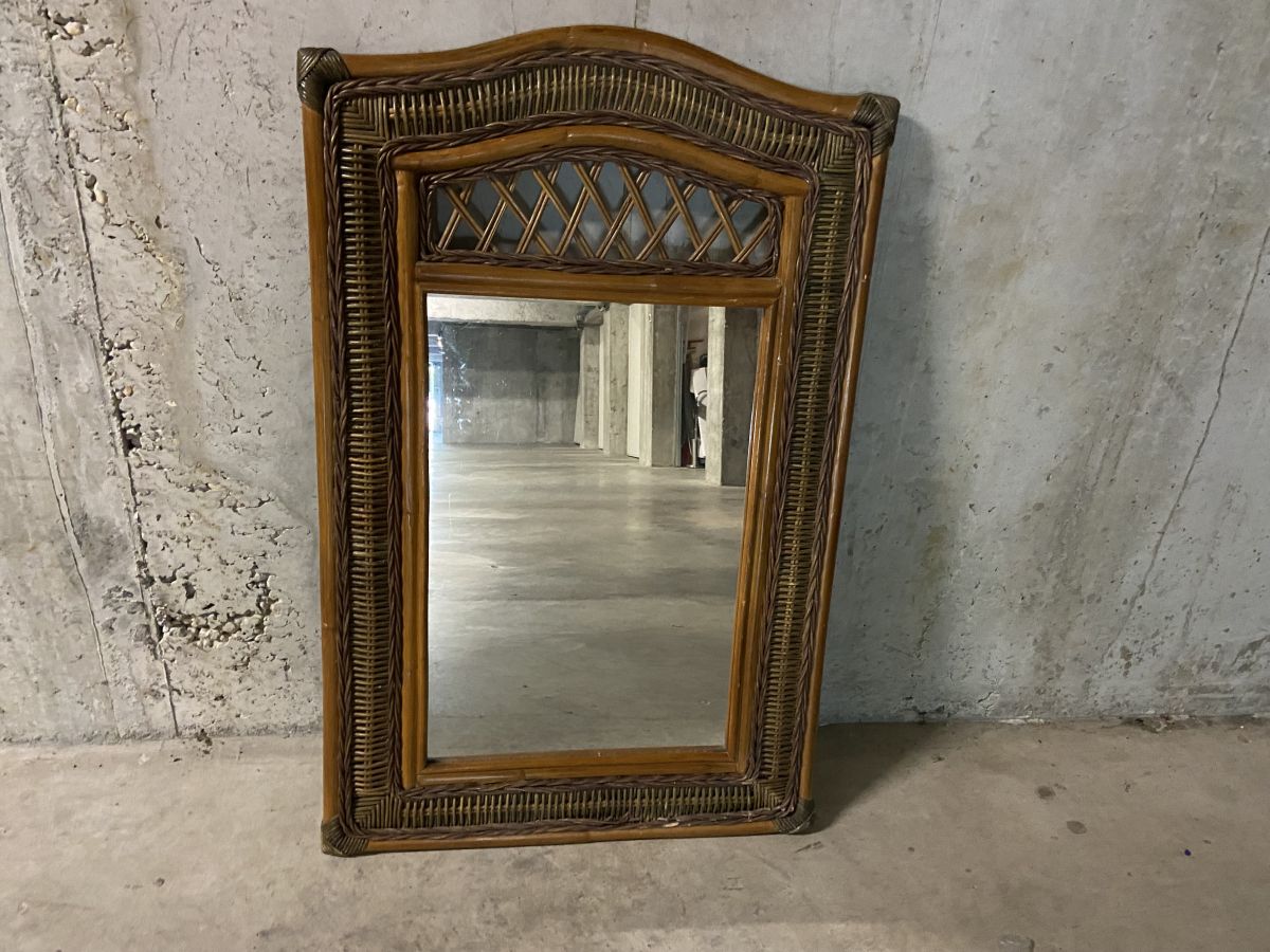 Miroir en rotin années 60