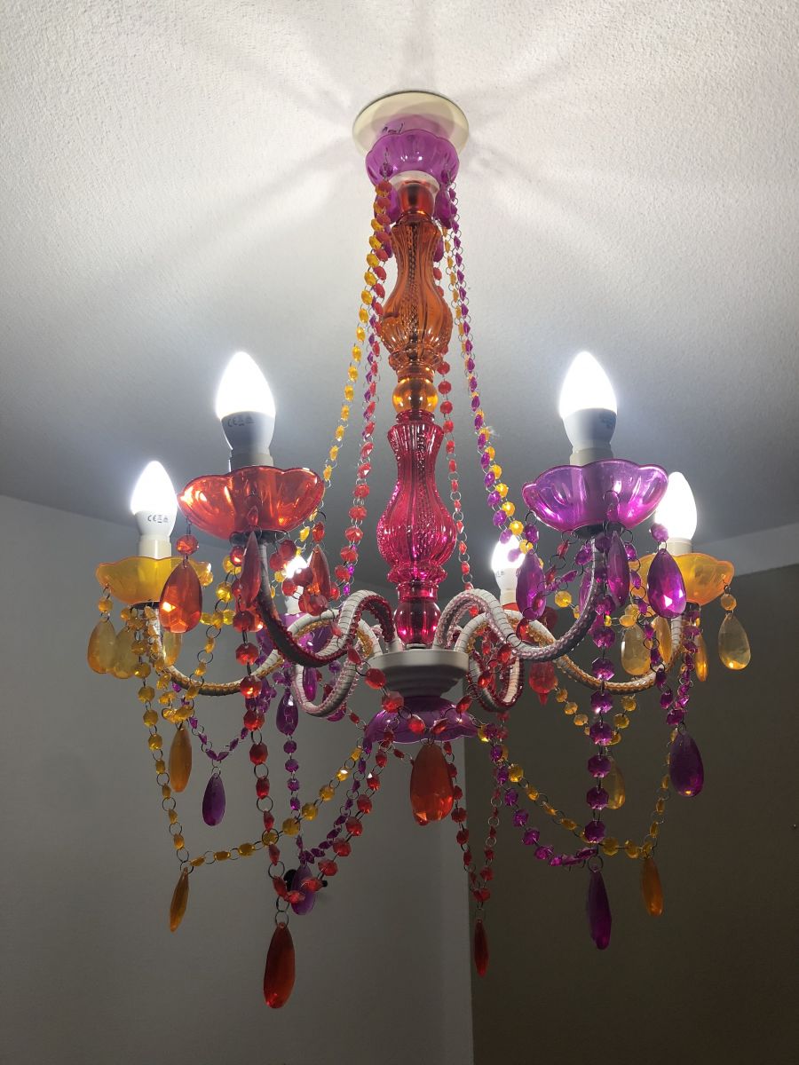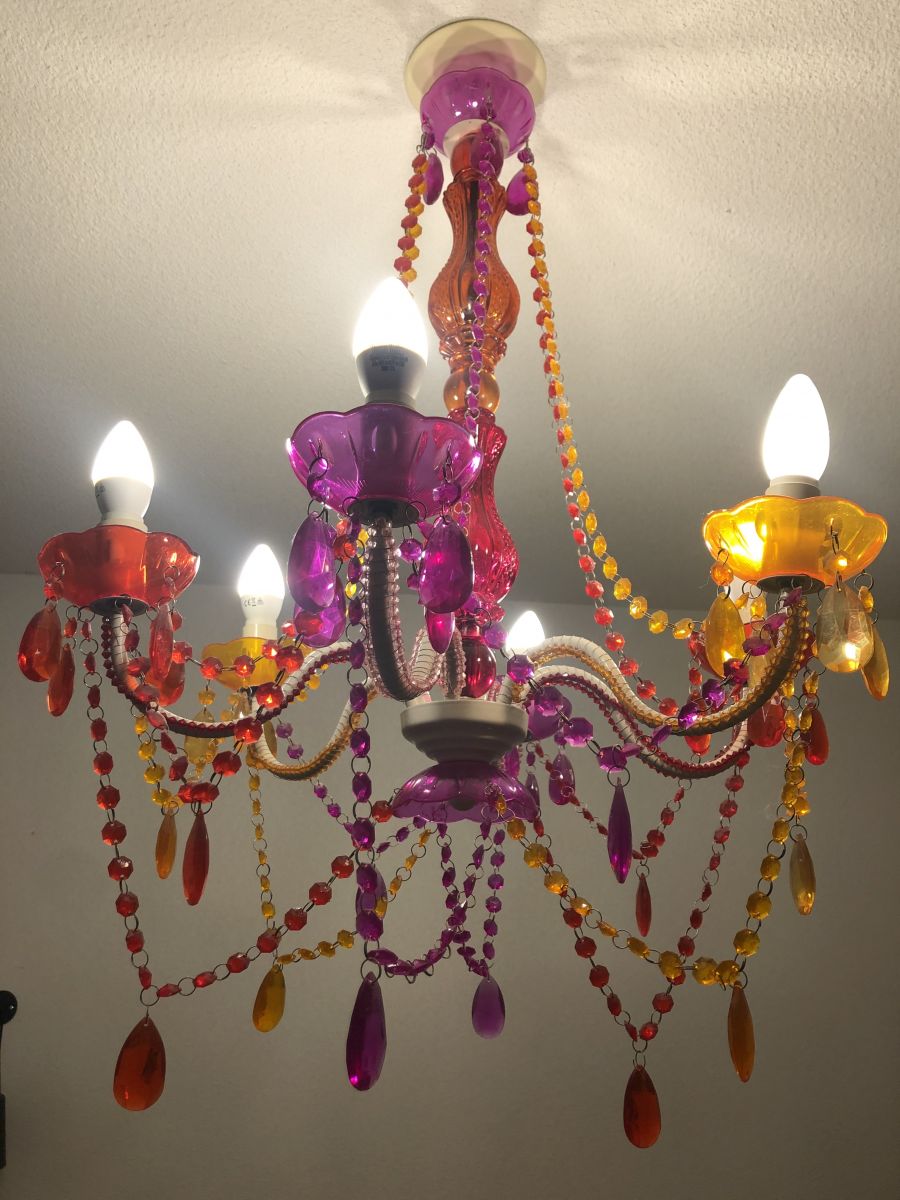 Lustre d'inspiration baroque entièrement en acrylique plein de détails somptueux.
