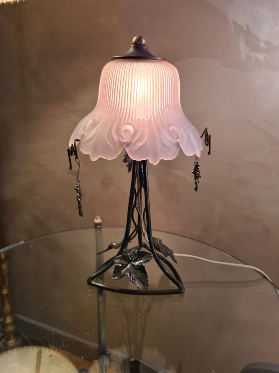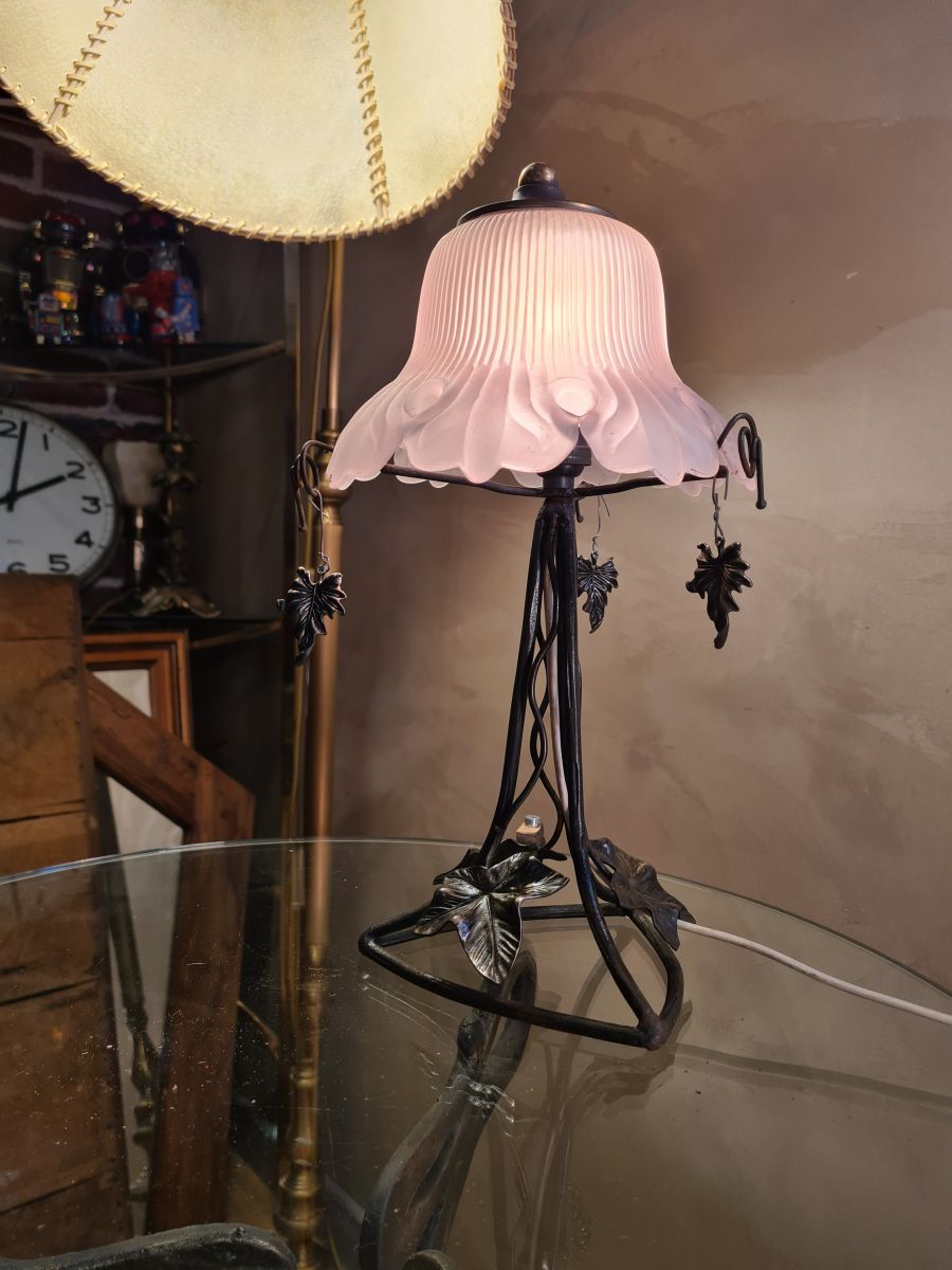lampe fer forgé , avec belle abat jour verre blanc moulé