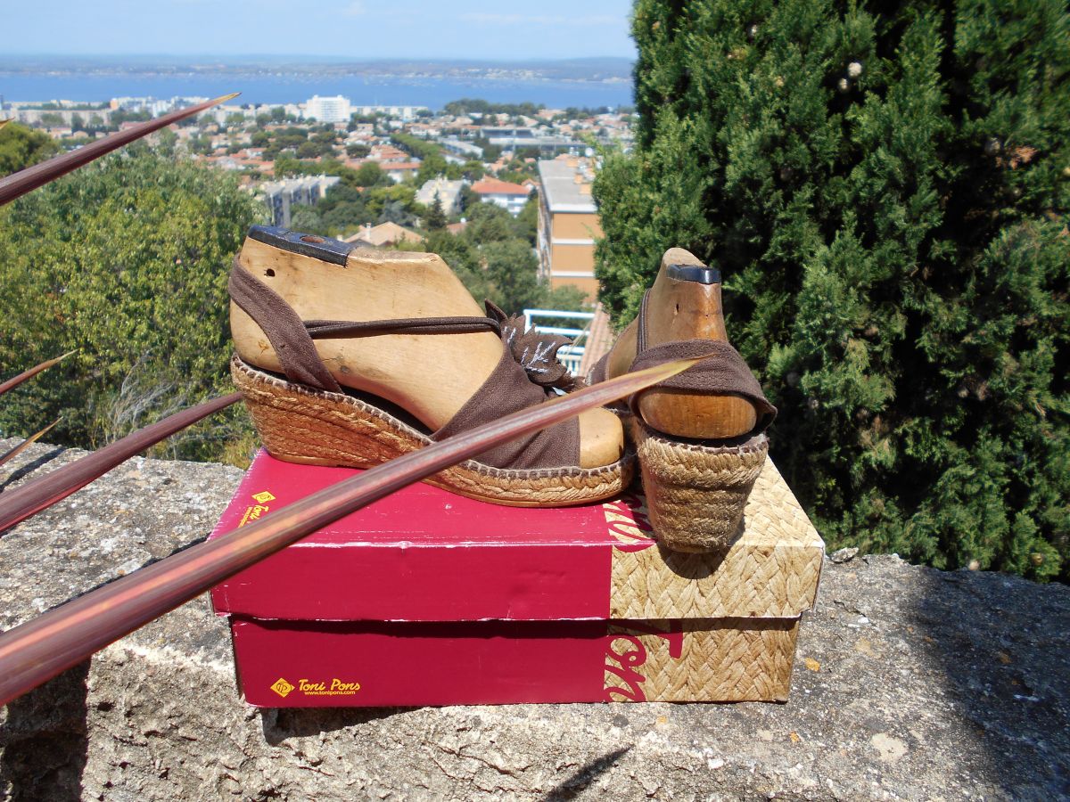 ESPADRILLES TONI PONS VINTAGE 1950TAUPE MARRON NEUF BOITE