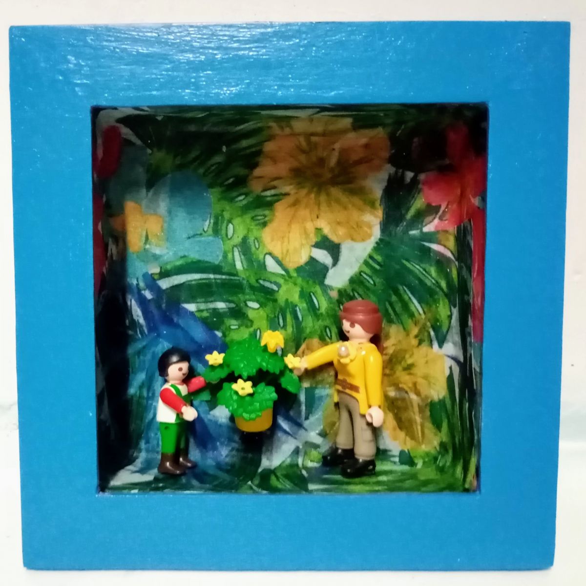 Dans ma collection de cadres Playmobil en bois peint et verni, derrière une vitre, les tableaux en relief racontent chacun une histoire à travers les iconiques figurines et le décor Playmobil. Ils font une jolie décoration murale personnalisée à offrir en cadeau à un enfant ou à un adulte